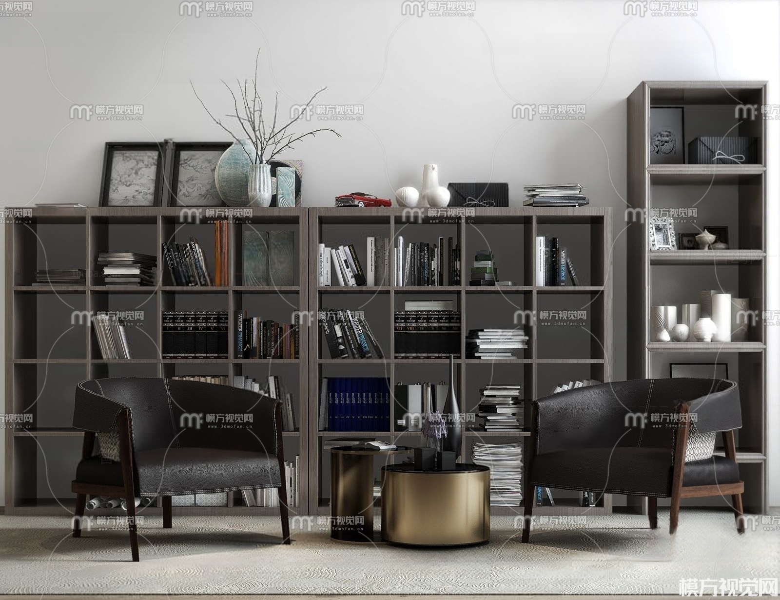 现代休闲椅 书柜组合3D模型(ID:0001005)