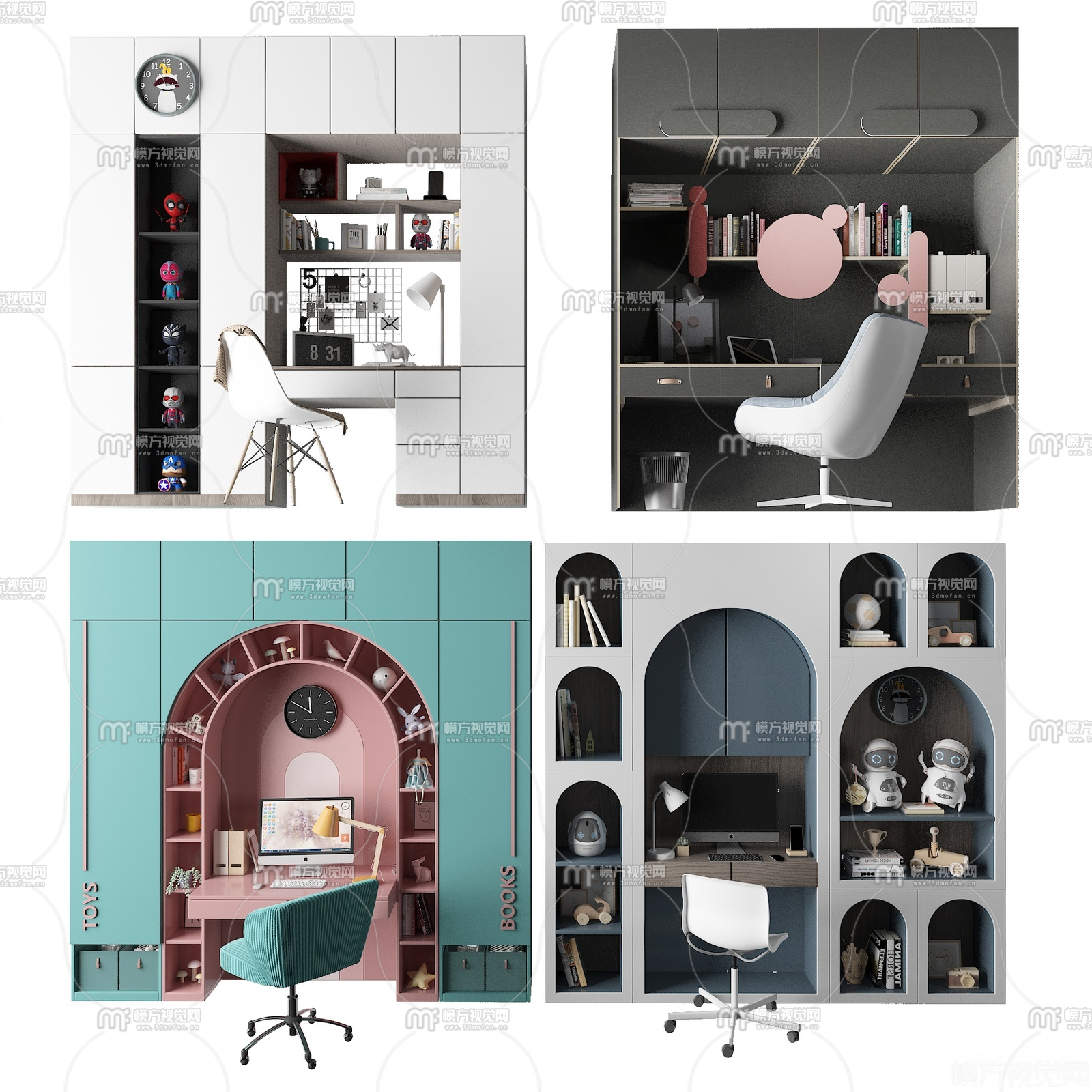 北欧儿童书柜书桌椅3D模型(ID:0010052)