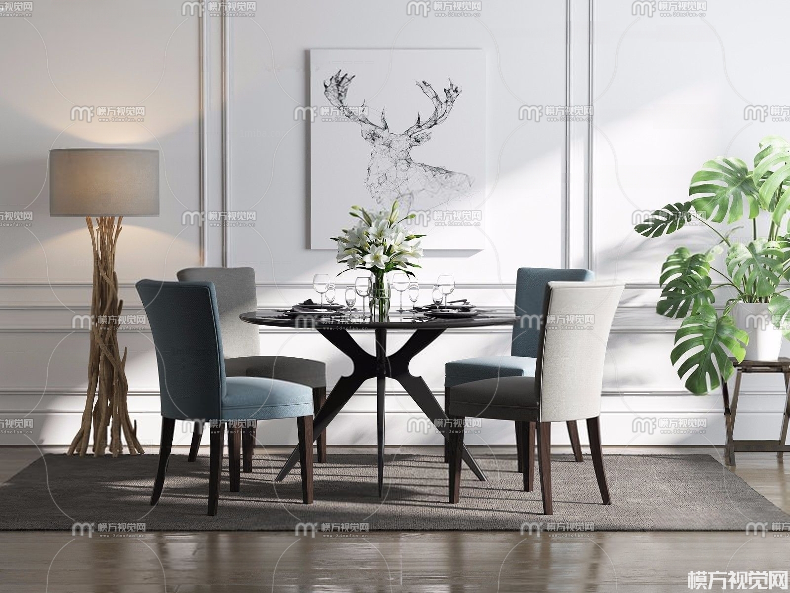 现代圆形餐桌椅 落地灯 装饰画3D模型(ID:0001007)