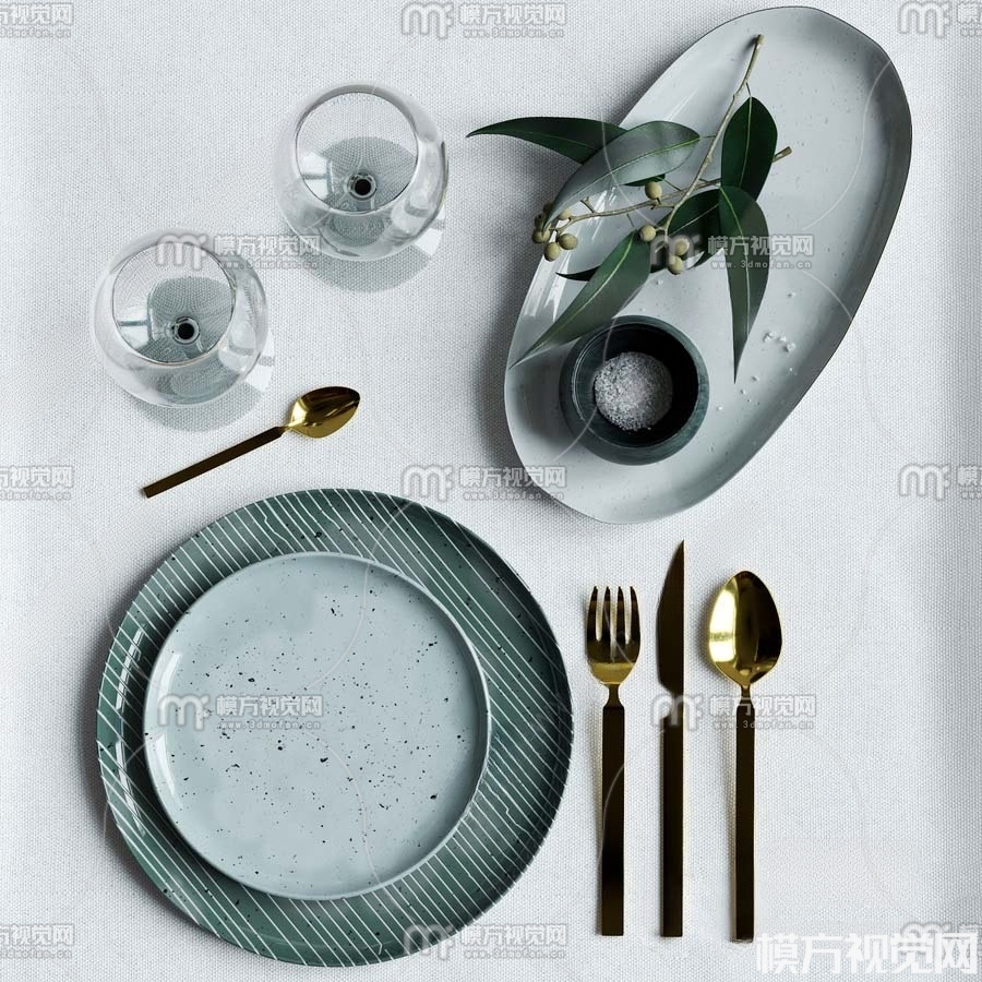 现代刀叉餐具摆件3D模型(ID:0010078)