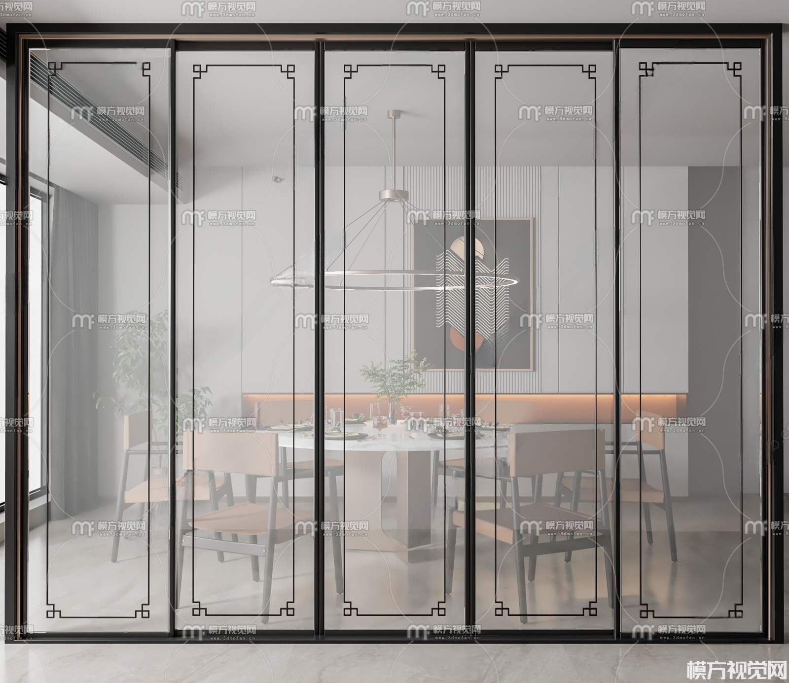新中式玻璃隔断屏风3D模型(ID:0010154)