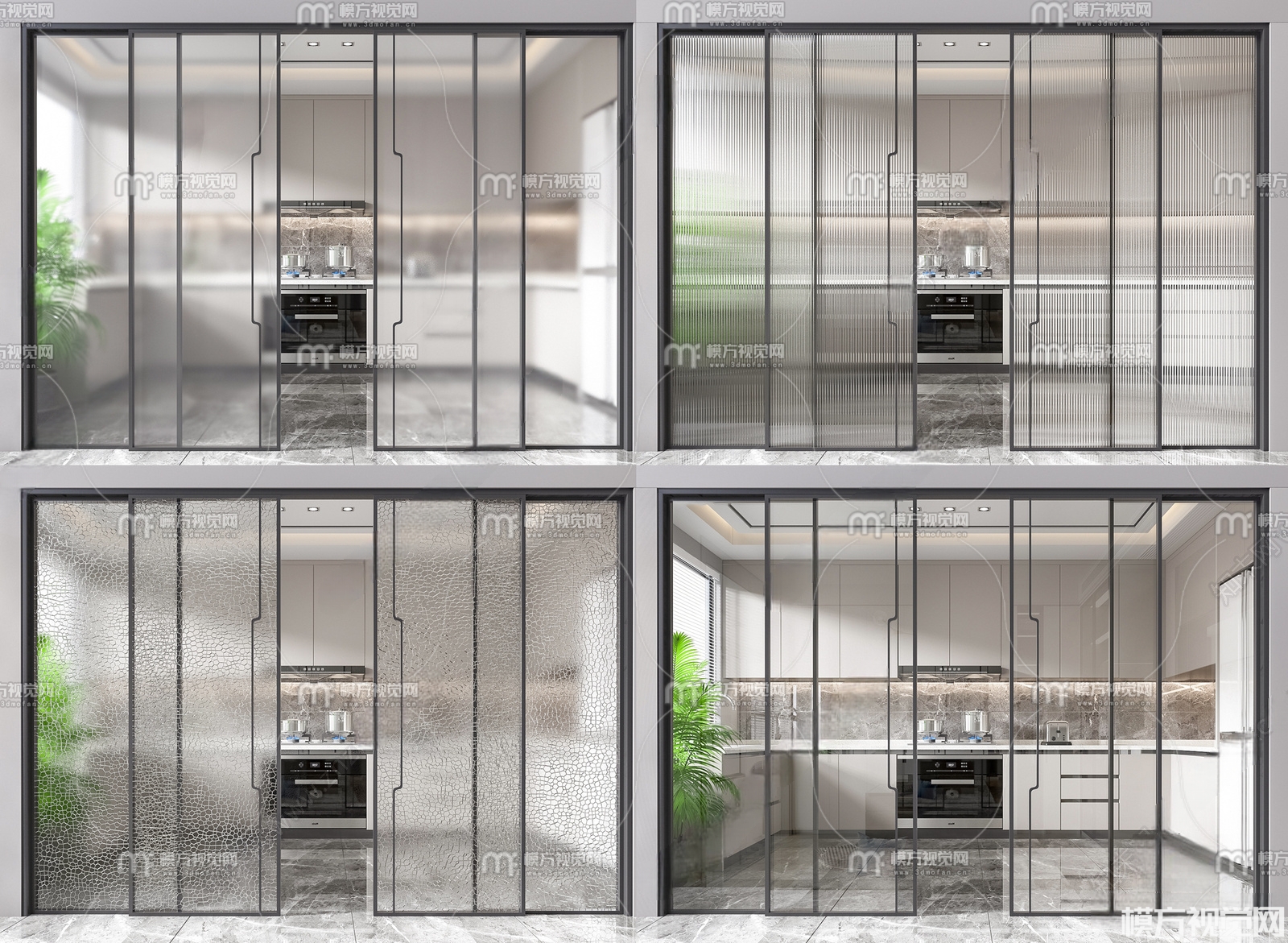 现代厨房玻璃推拉门3D模型(ID:0010167)