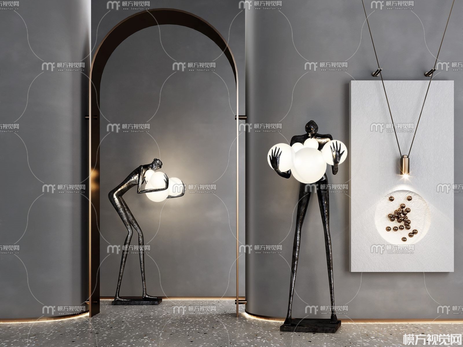 现代人物雕塑落地灯3D模型(ID:0000102)