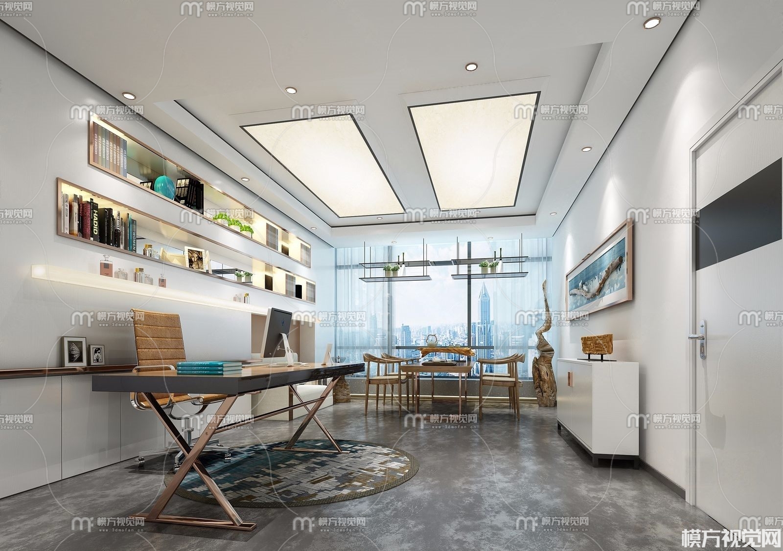 新中式总经理办公室3D模型(ID:0010303)