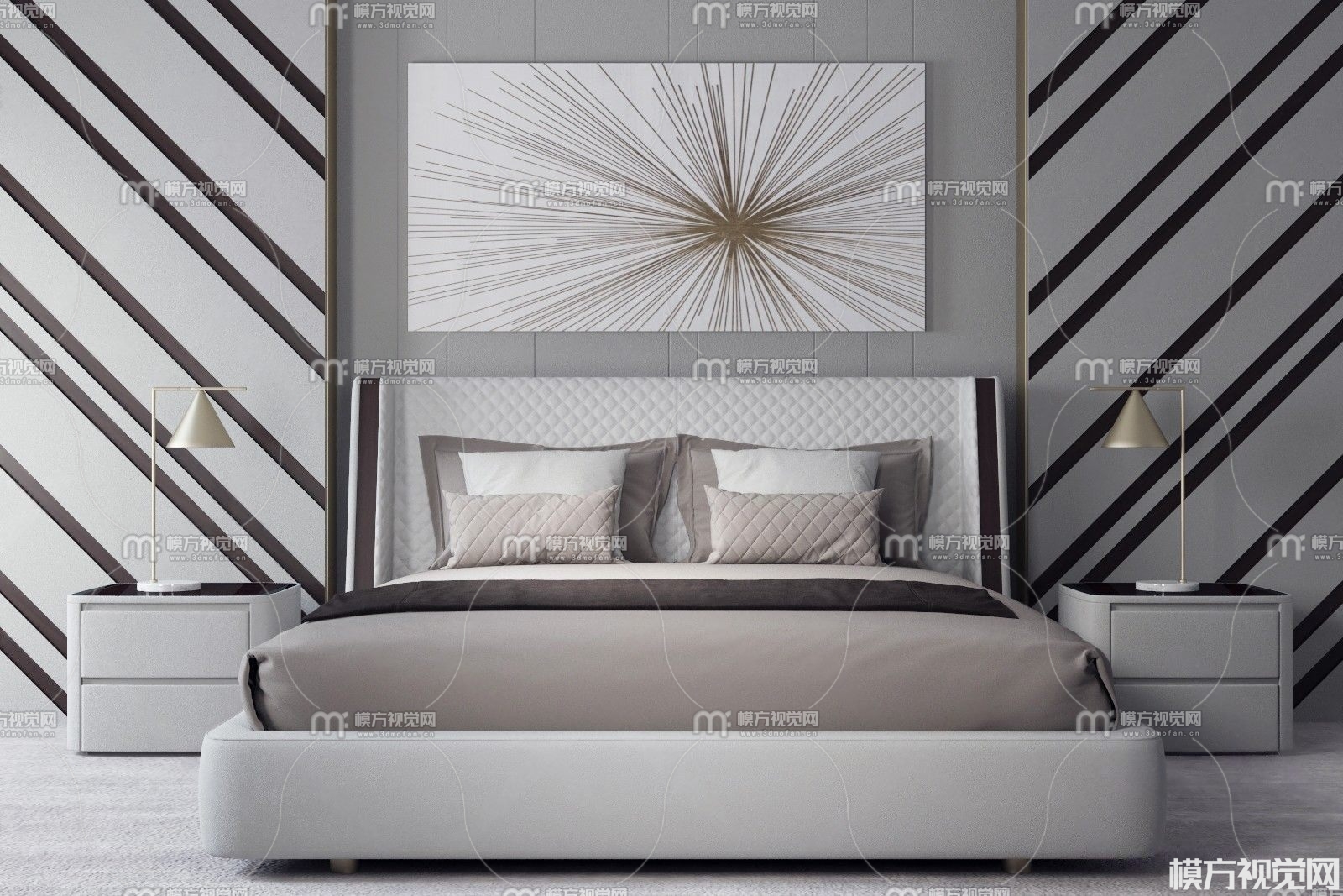 现代双人床具组合3D模型(ID:0010342)