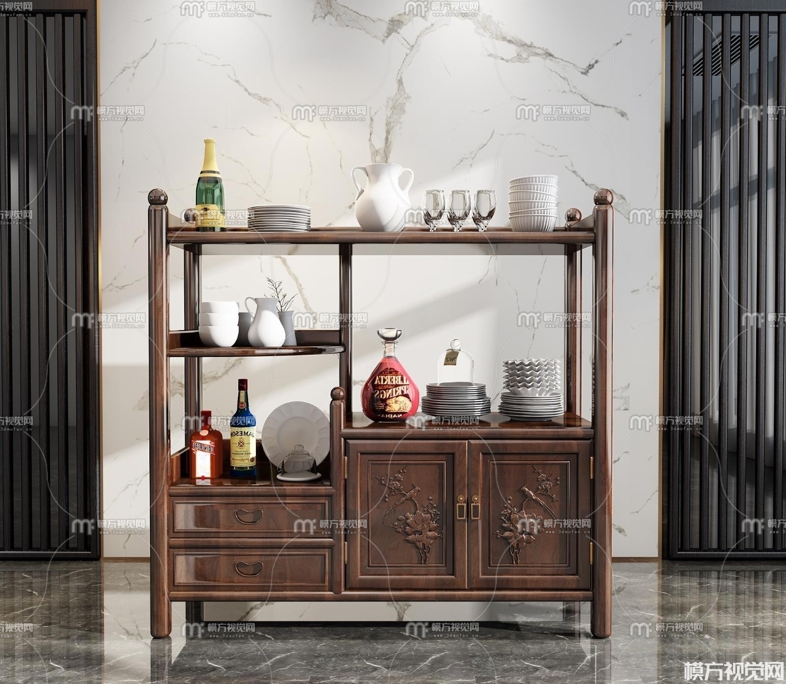 中式餐边柜3D模型(ID:0010403)
