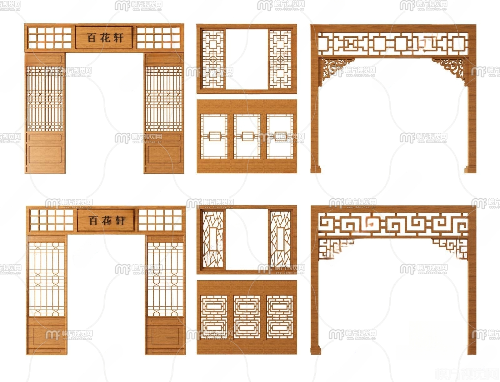 中式花格门窗窗花组合3D模型(ID:0010436)