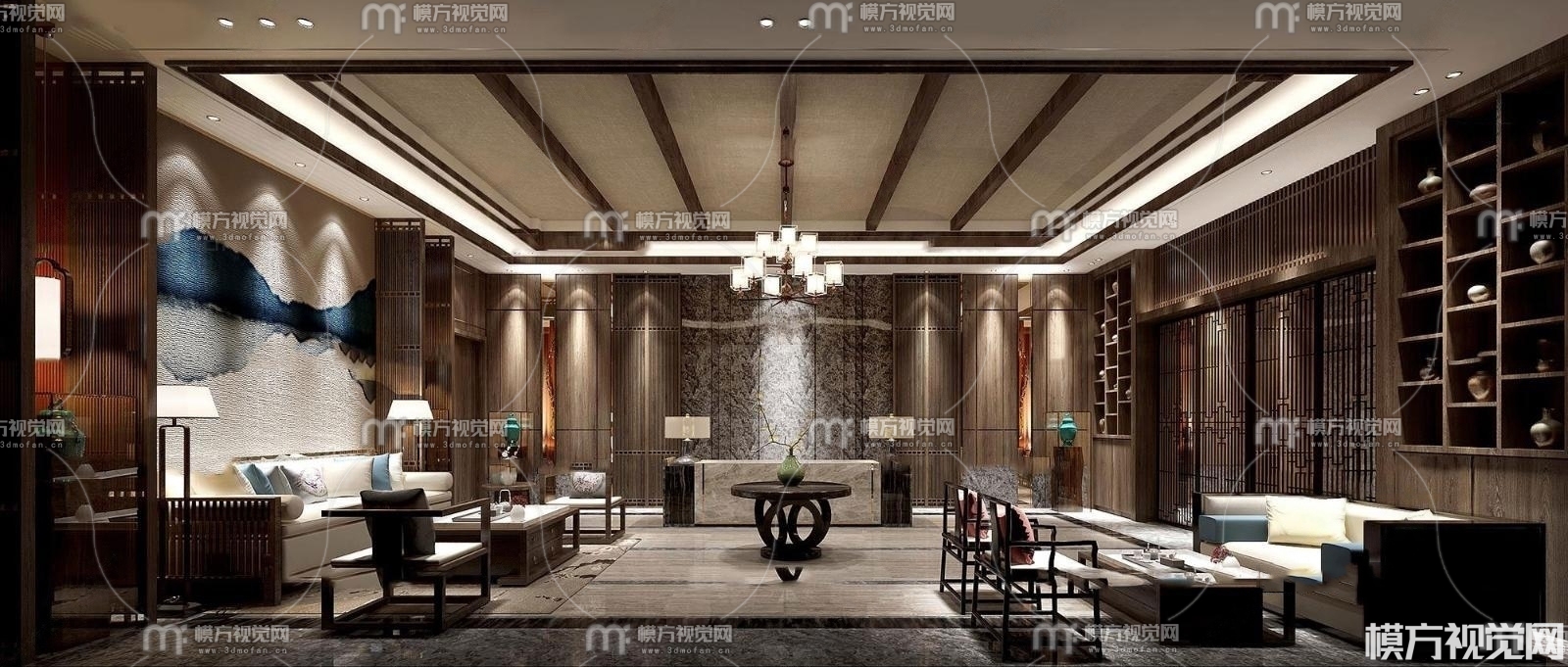 中式会所大厅3D模型(ID:0010438)