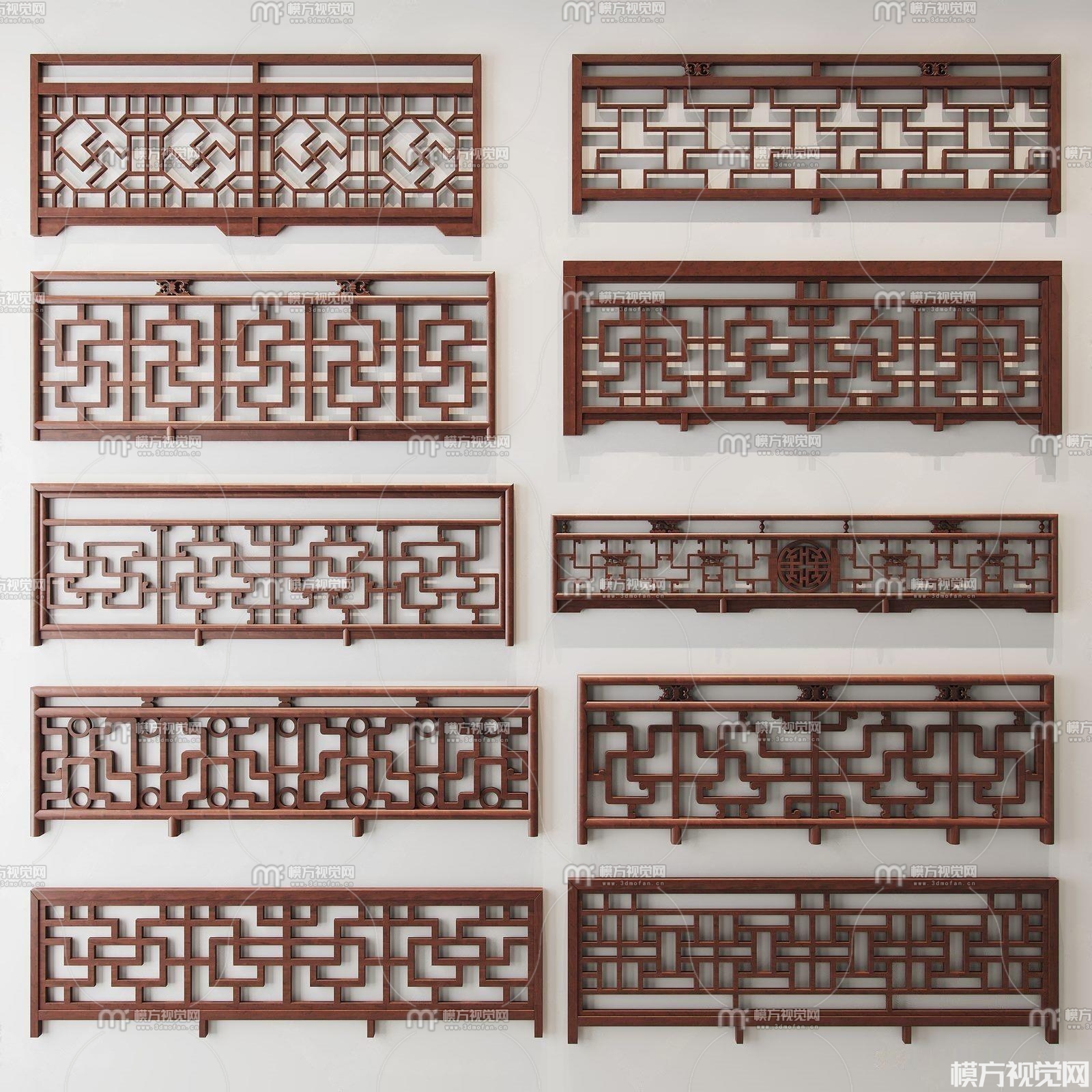 新中式栏杆组合3D模型(ID:0010458)