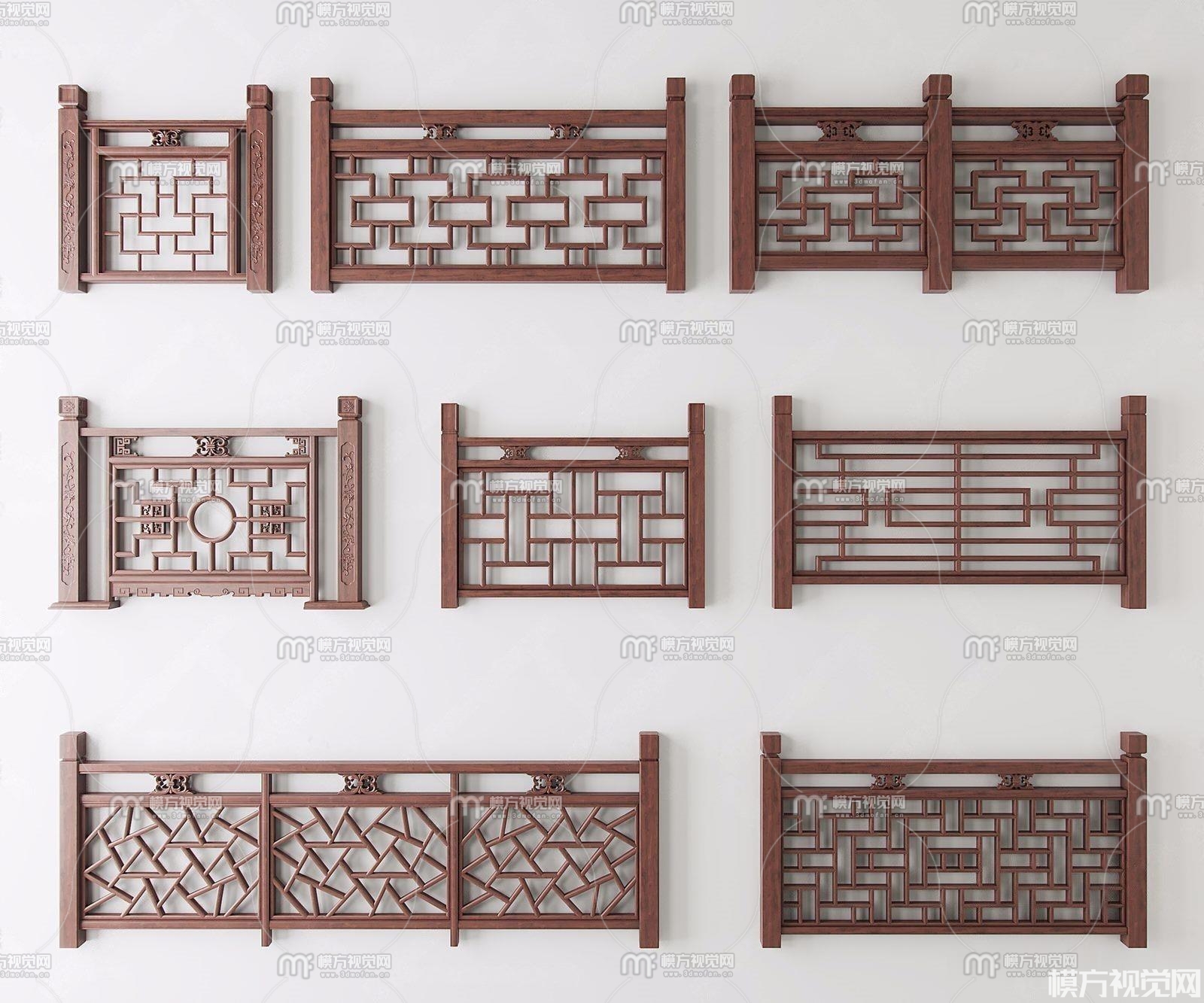 新中式木质栏杆护栏3D模型(ID:0010459)