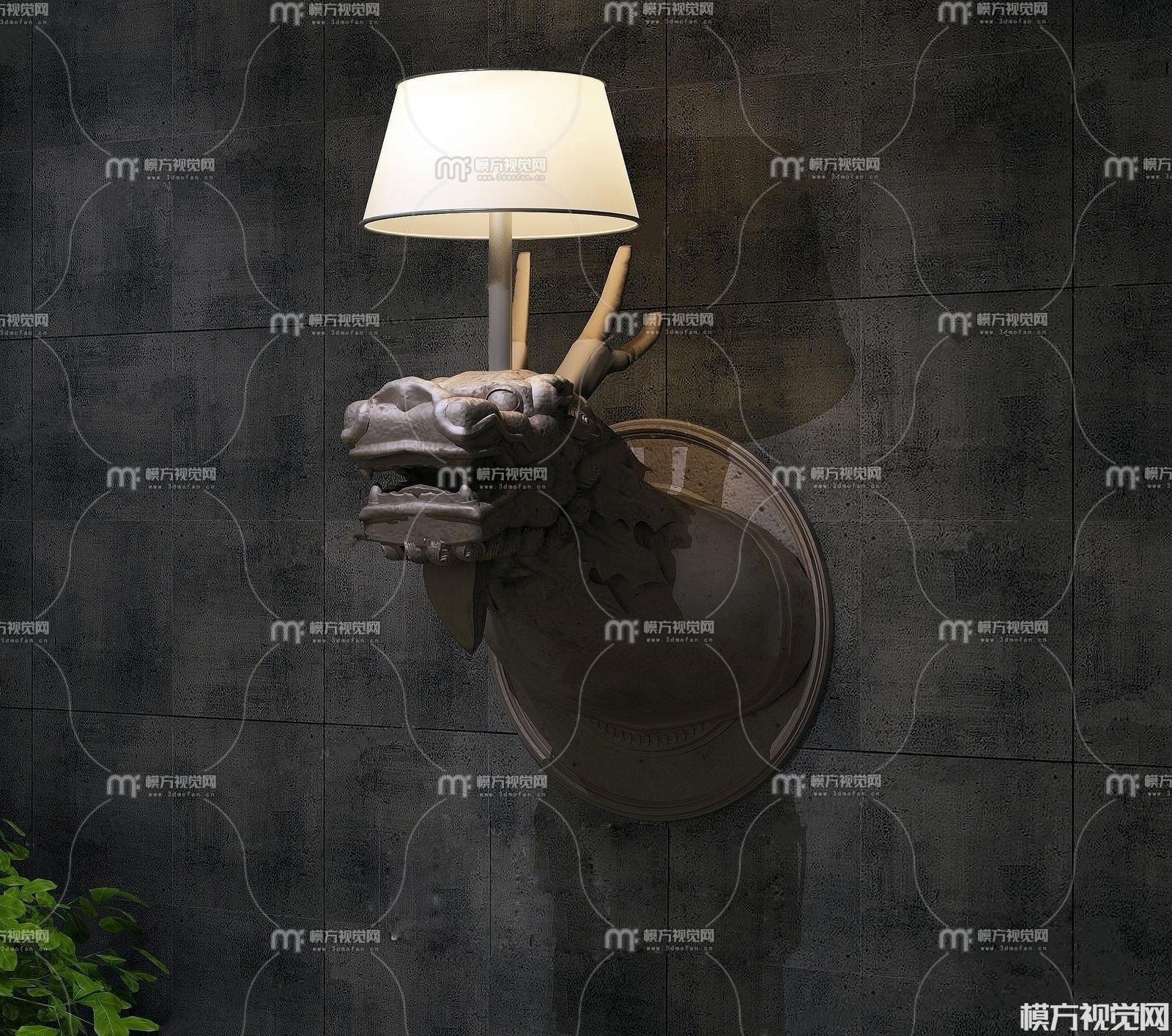 中式龙头雕塑壁灯3D模型(ID:0010462)