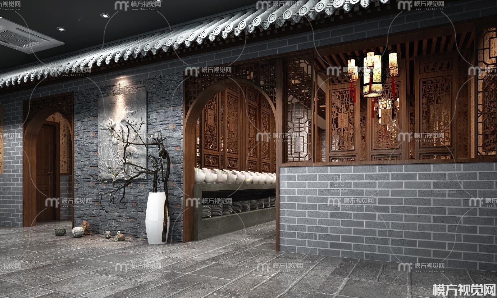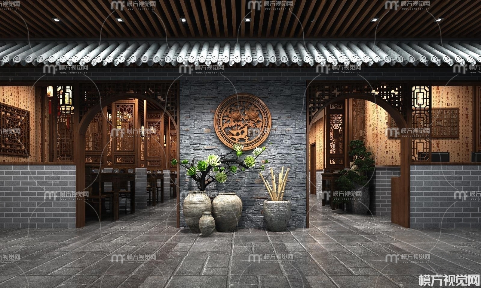 中式餐厅门头3D模型(ID:0010466)