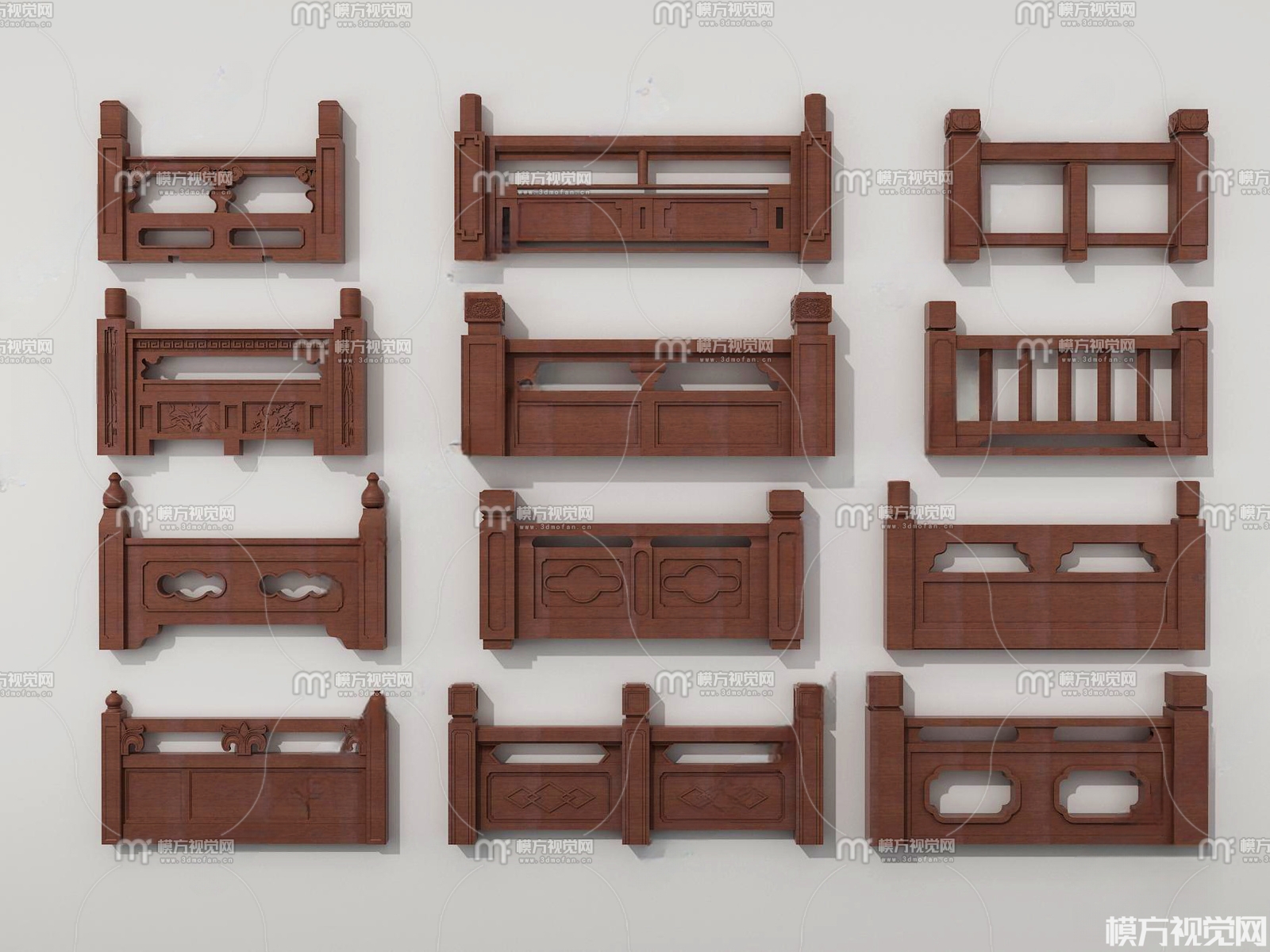 中式实木雕花栏杆3D模型(ID:0010498)