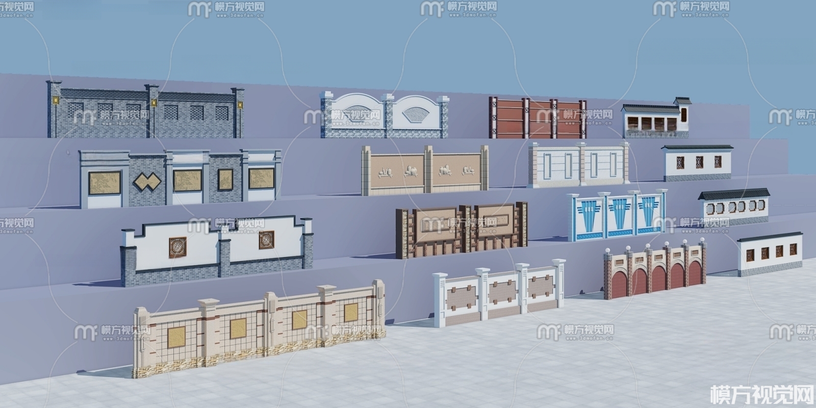 新中式文化墙 院墙围墙3D模型(ID:0010526)