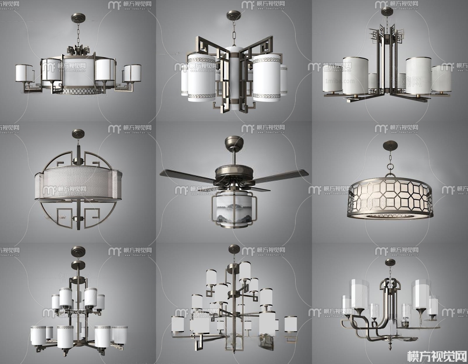 新中式吊灯组合3D模型(ID:0001053)