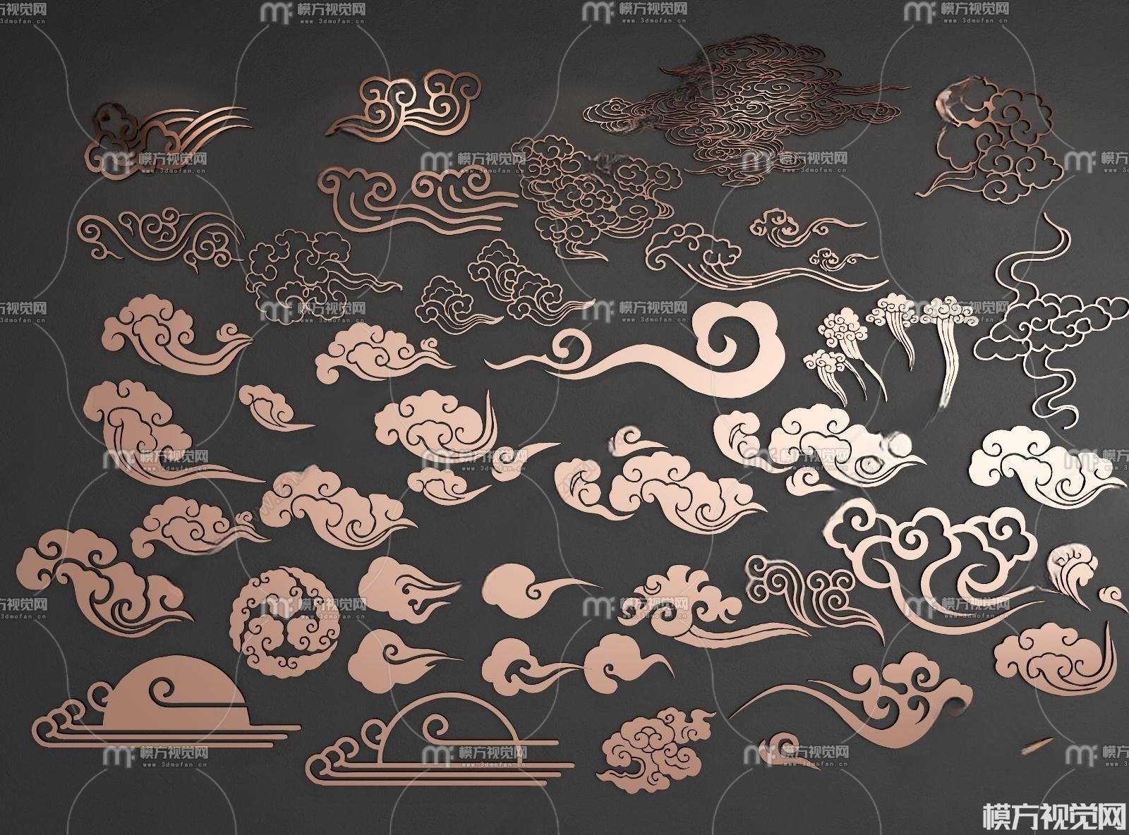 新中式现代金属祥云墙饰3D模型(ID:0010534)