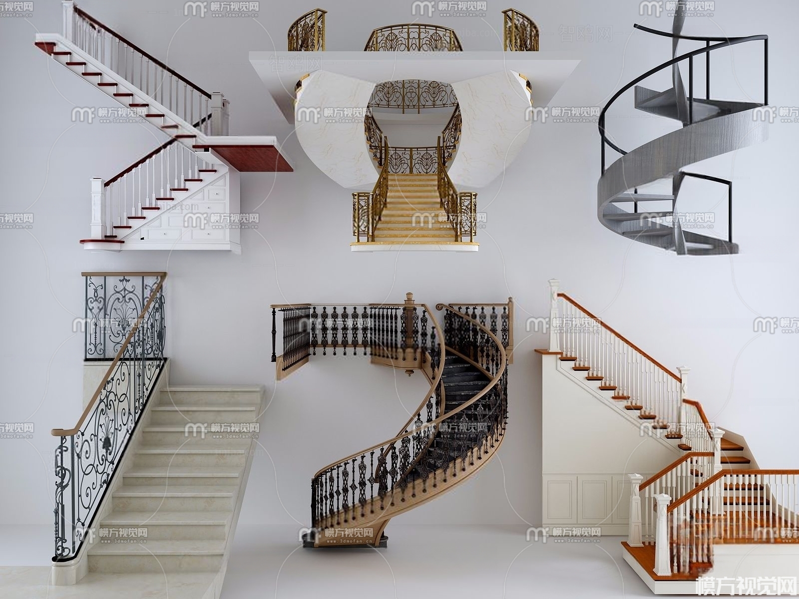 简欧楼梯栏杆 旋转楼梯3D模型(ID:0001062)