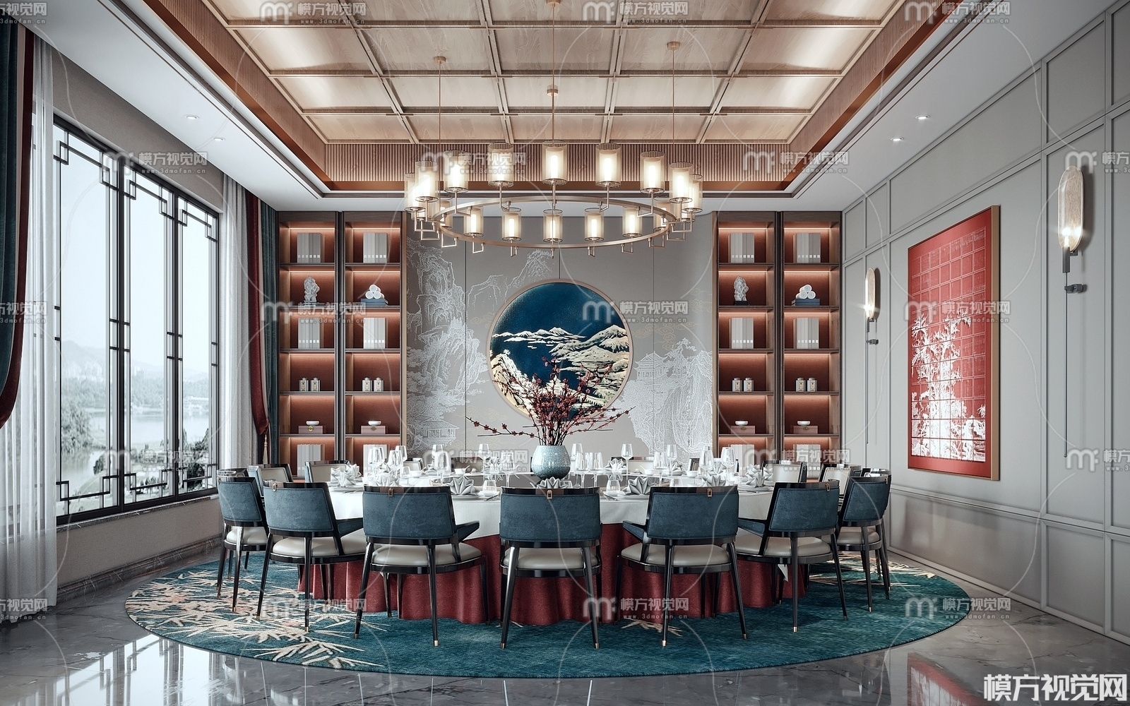 新中式轻奢酒店餐厅包间3D模型(ID:0010624)