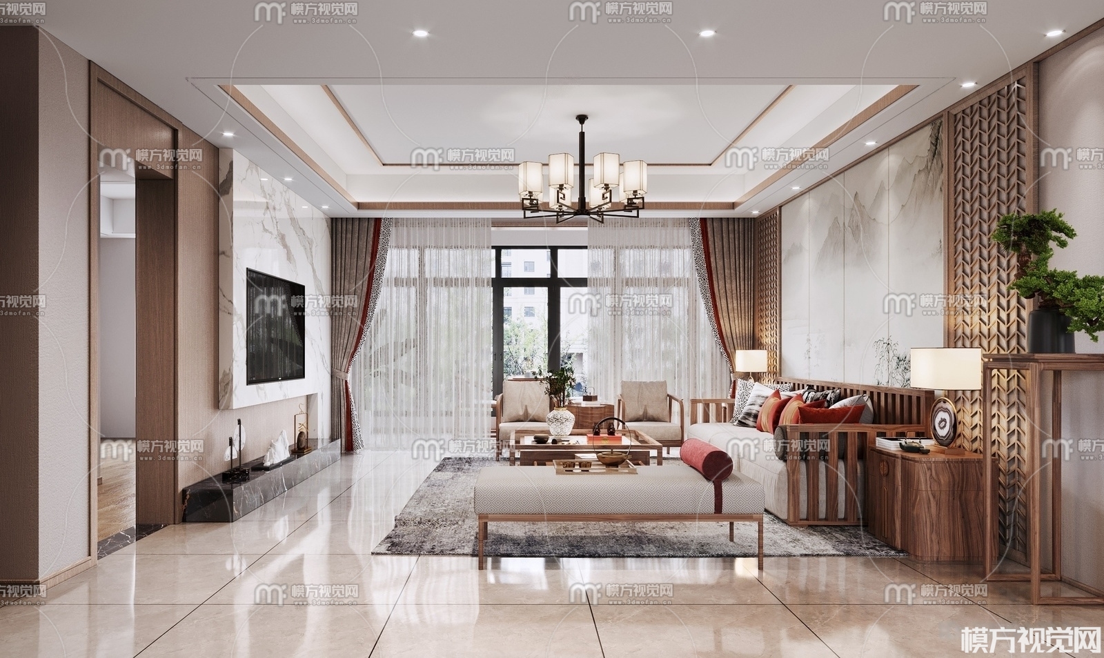 新中式客厅3D模型(ID:0010626)