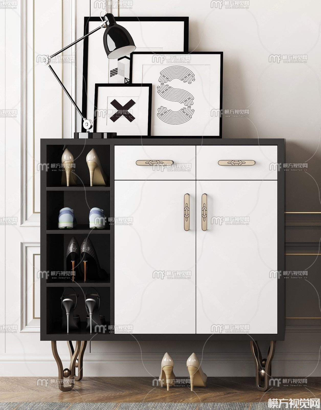 新中式轻奢鞋柜3D模型(ID:0010628)