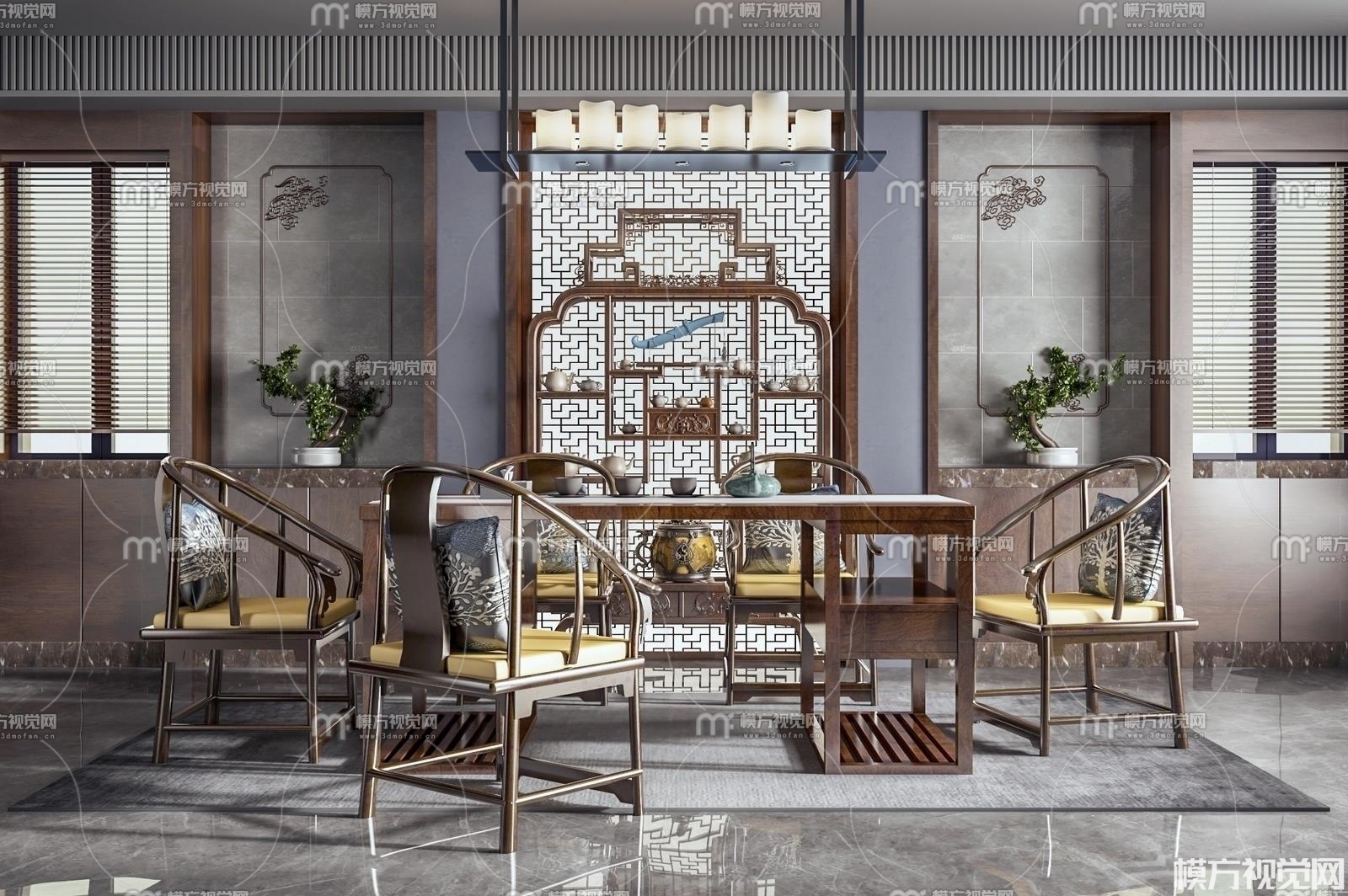 新中式实木茶桌椅3D模型(ID:0010645)