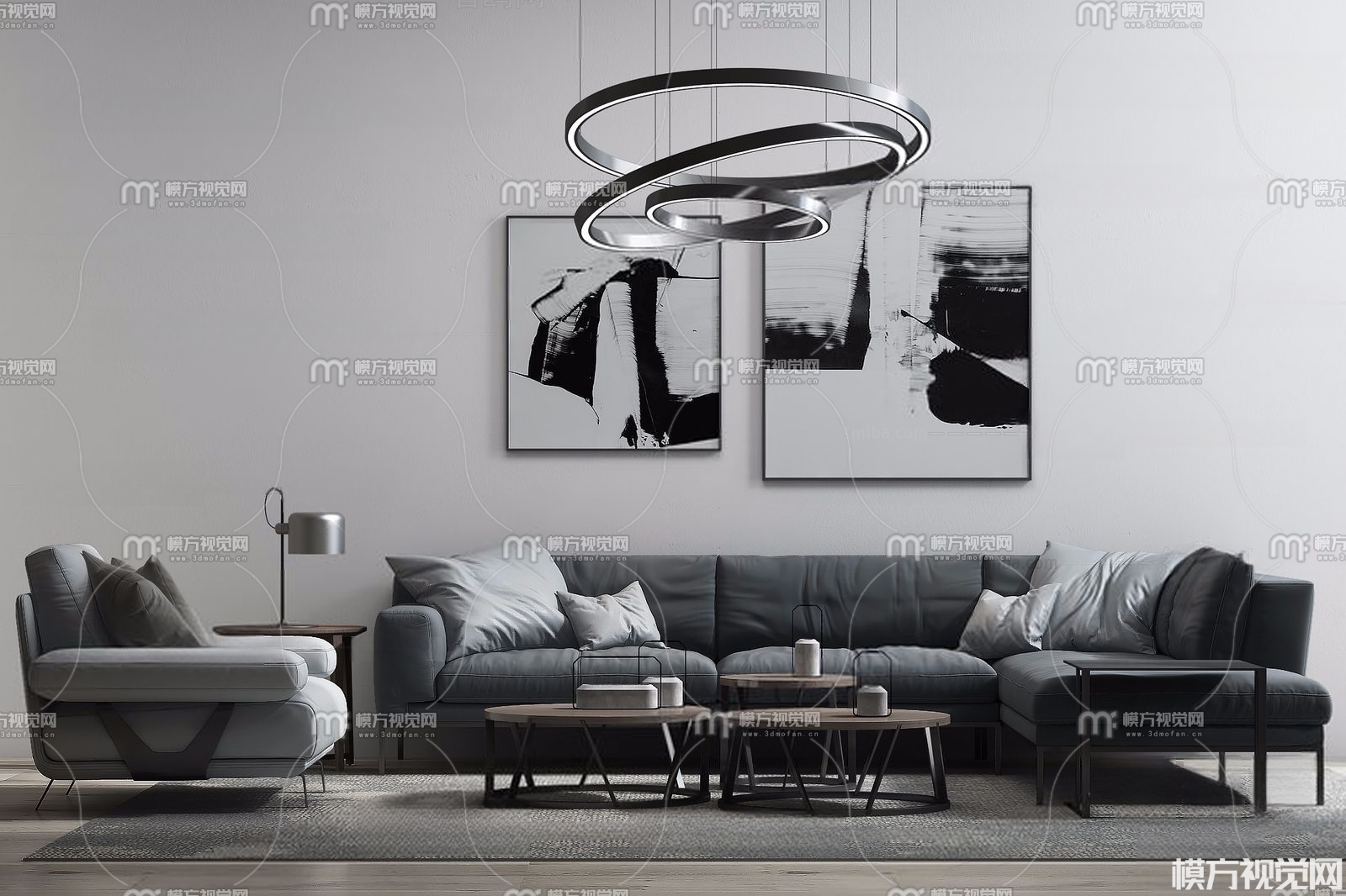 现代沙发茶几 吊灯组合3D模型(ID:0001065)