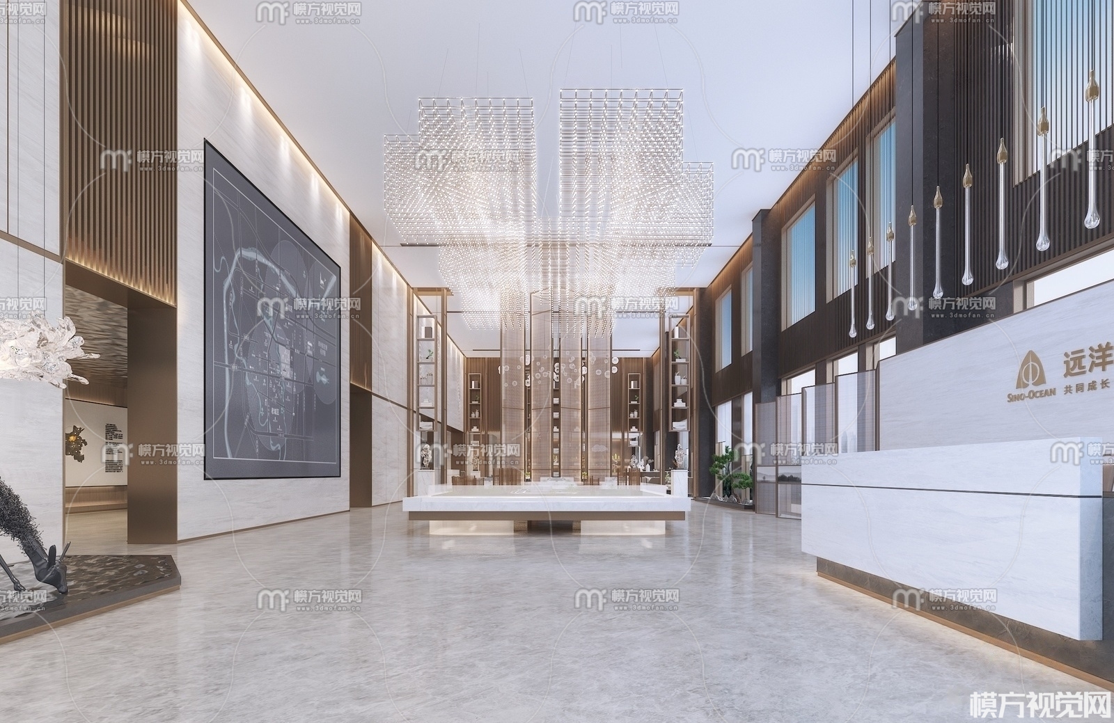 新中式售楼处大堂3D模型(ID:0010682)