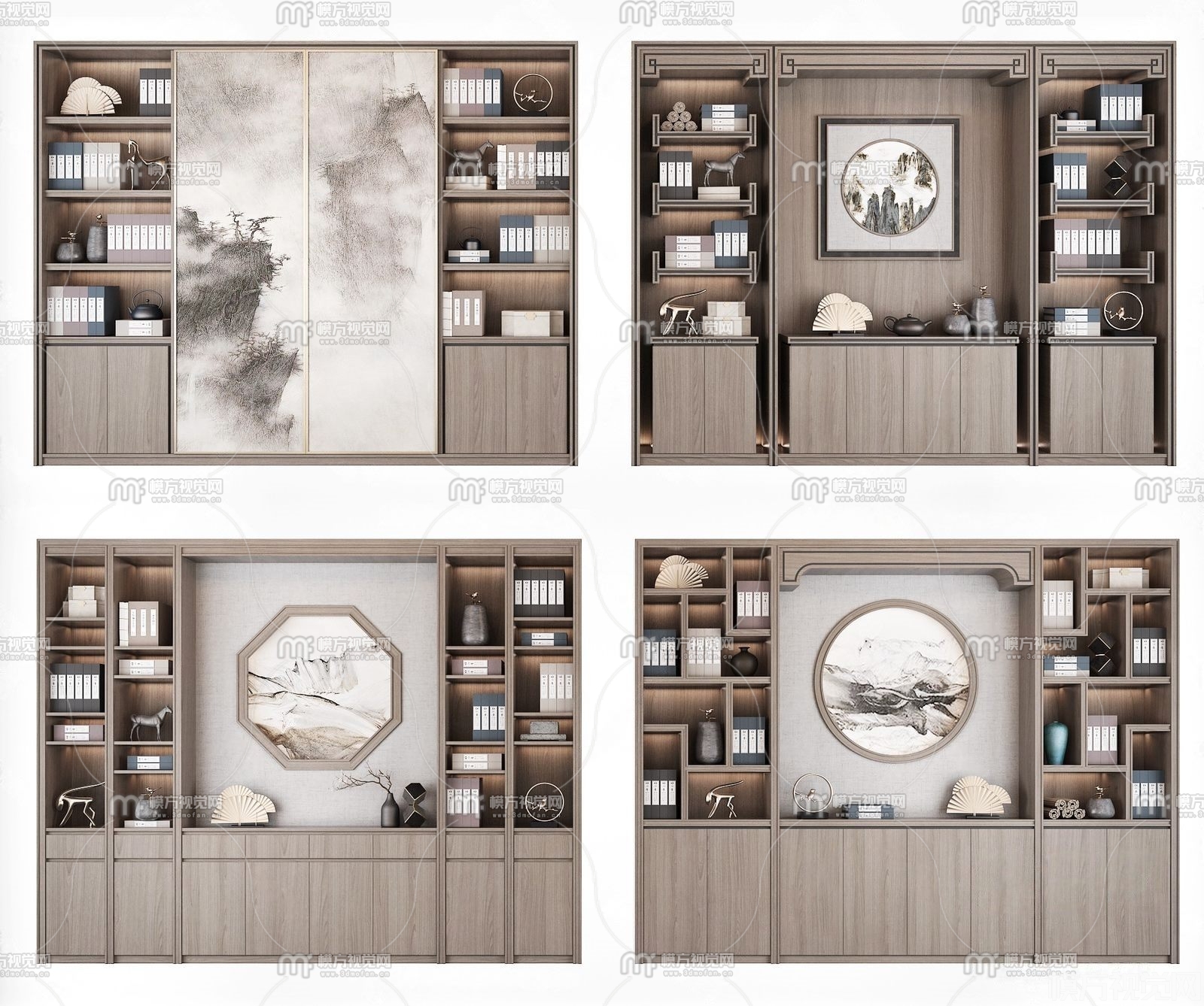 新中式书柜组合3D模型(ID:0010738)