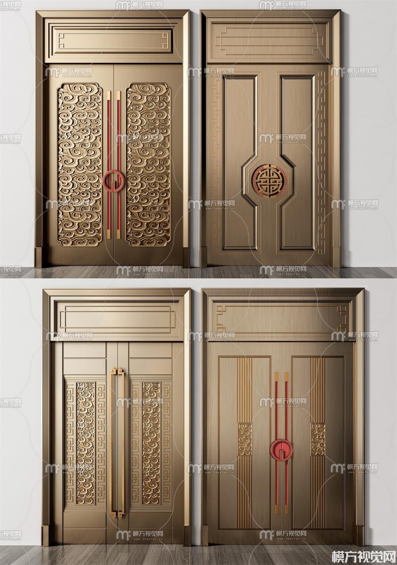 新中式双开拉丝古铜大门3D模型(ID:0010743)