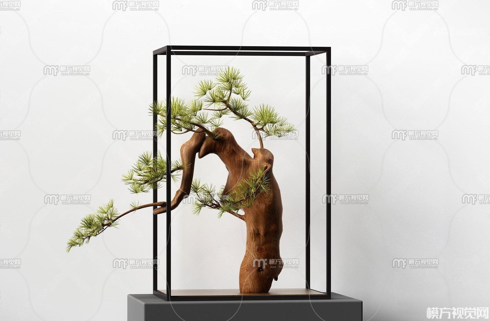 新中式松树盆栽摆件3D模型(ID:0010752)