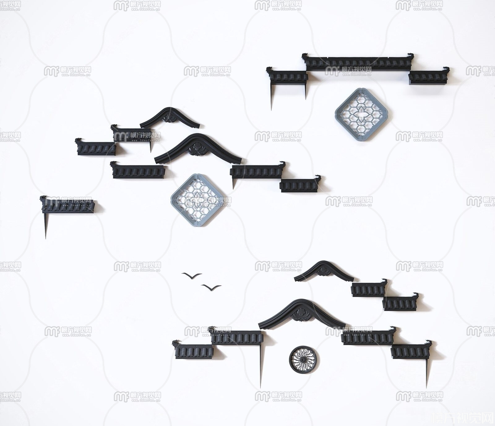 新中式屋檐墙饰壁饰组合3D模型(ID:0010777)