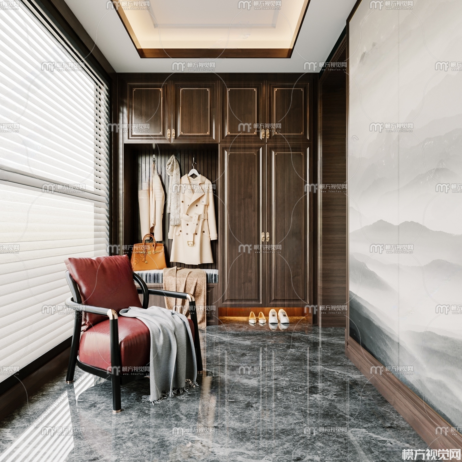 新中式玄关鞋柜休闲椅3D模型(ID:0010793)