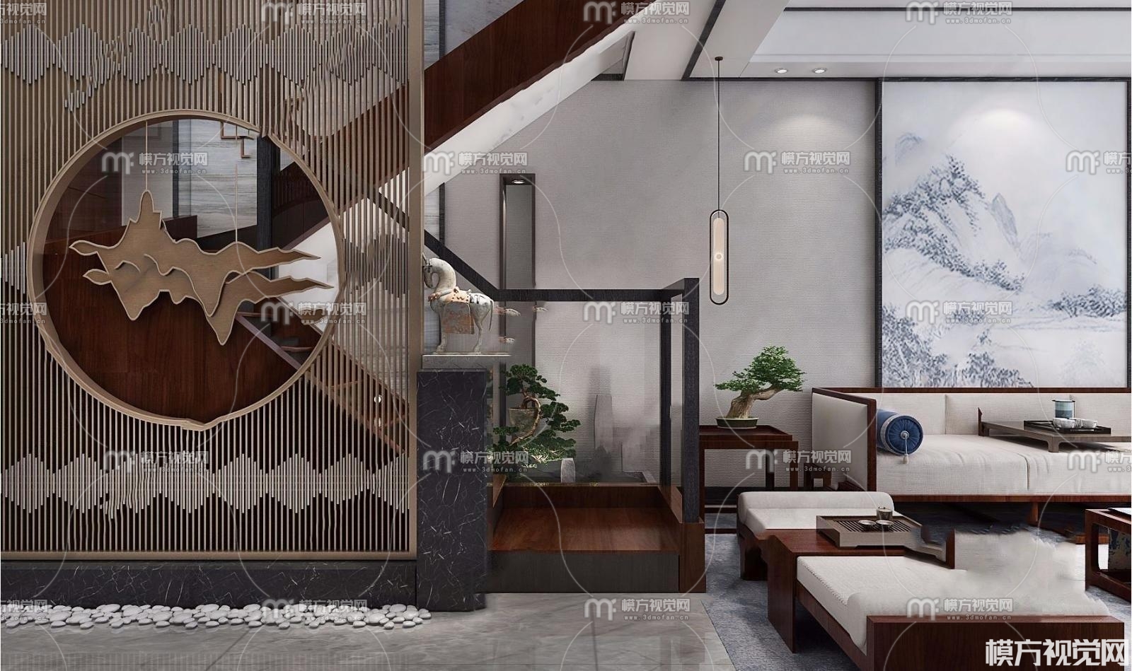 新中式玄关楼梯过道3D模型(ID:0010809)