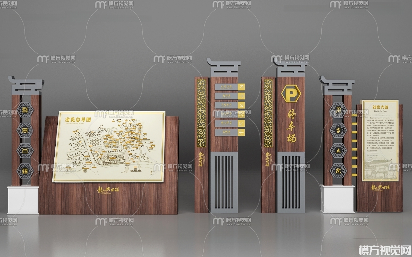新中式指示牌导引牌3D模型(ID:0010840)