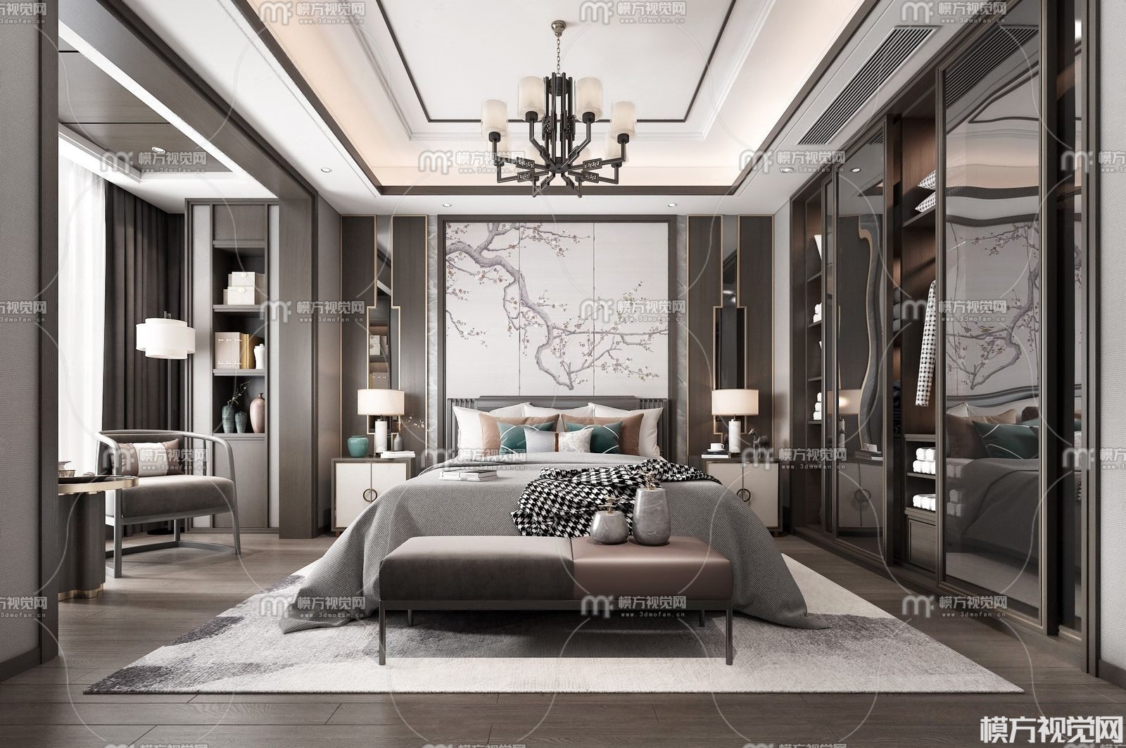 新中式卧室3D模型(ID:0010851)