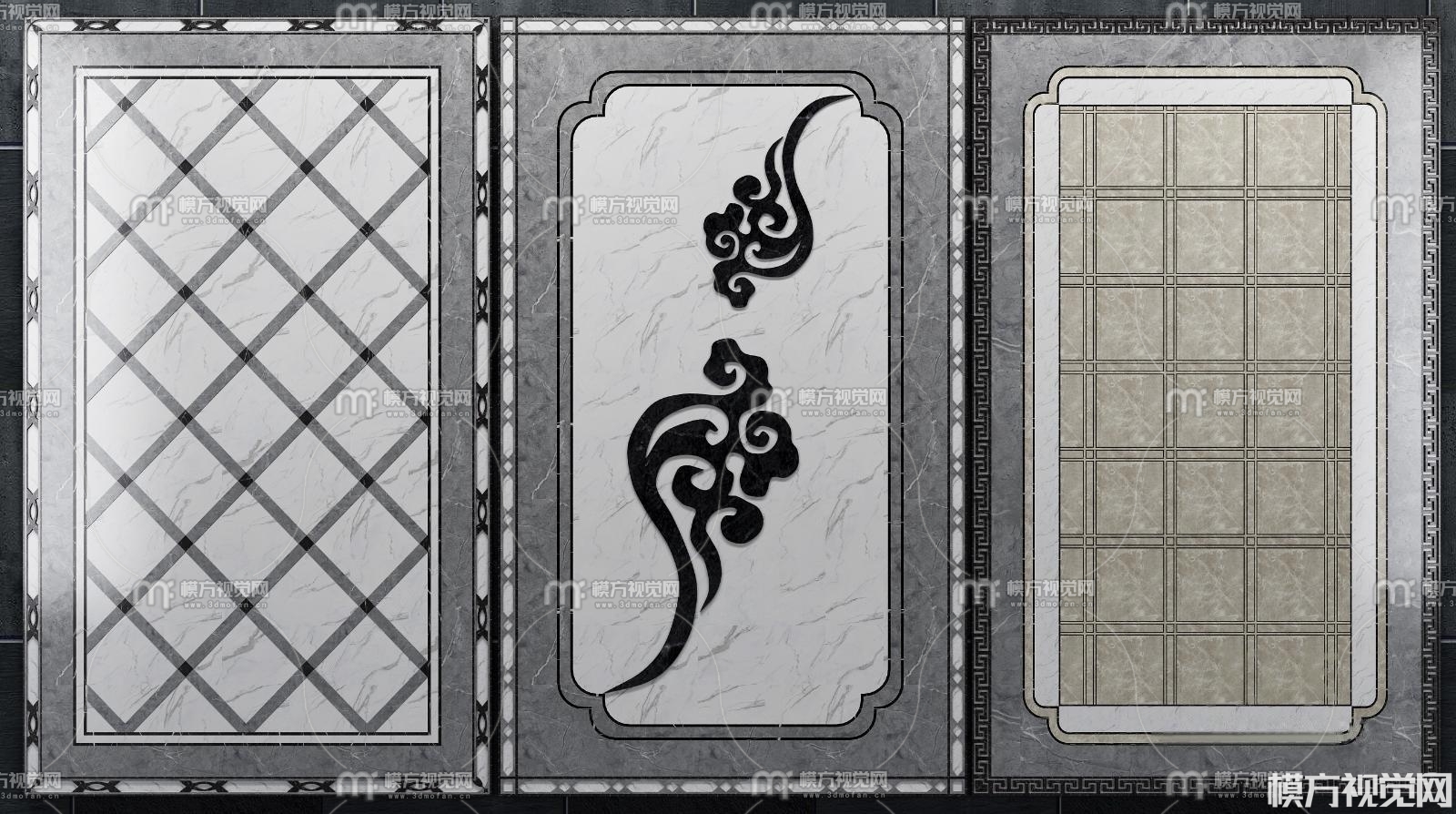 新中式瓷砖拼花组合3D模型(ID:0010882)
