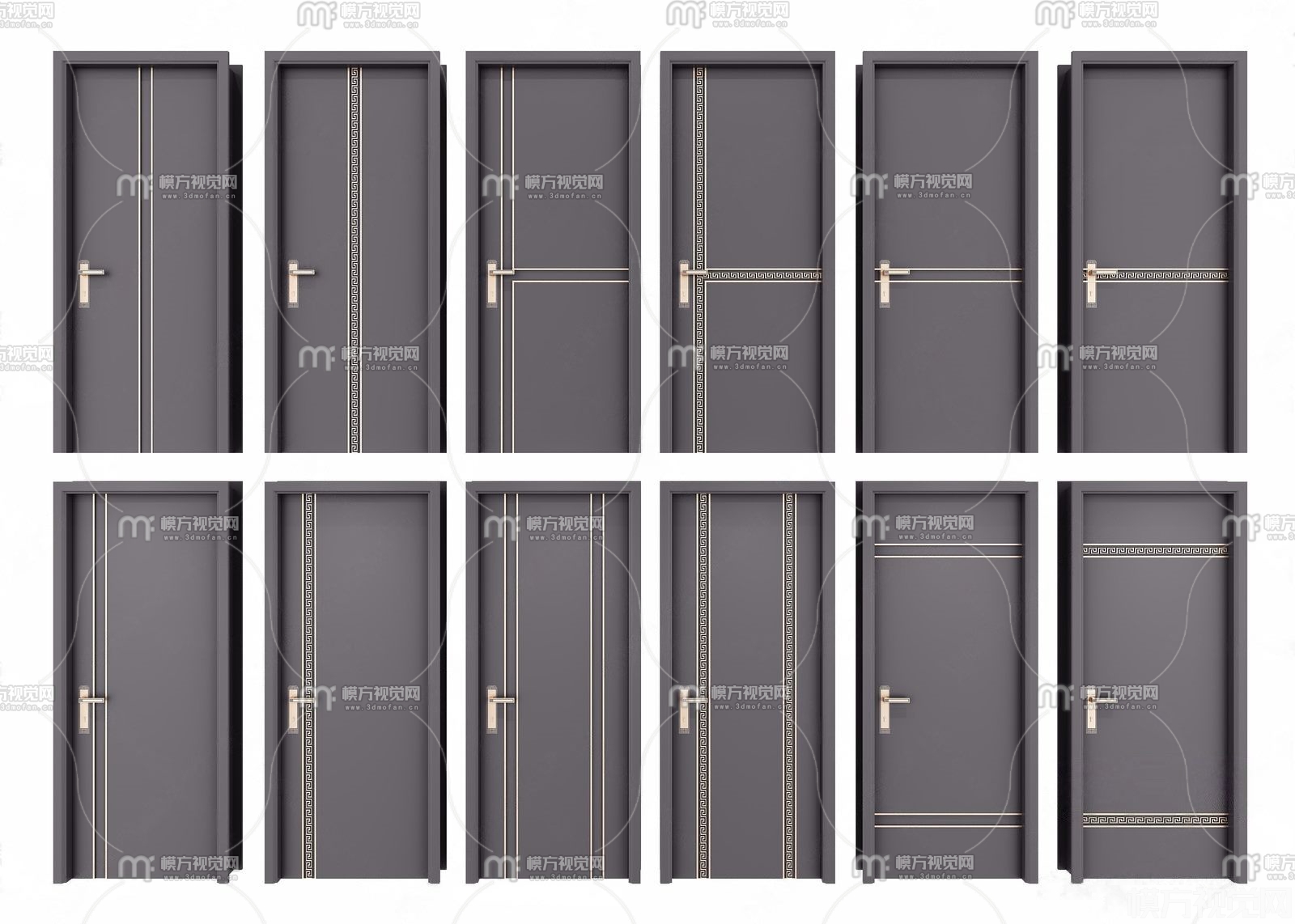 新中式单开门房门组合3D模型(ID:0010900)