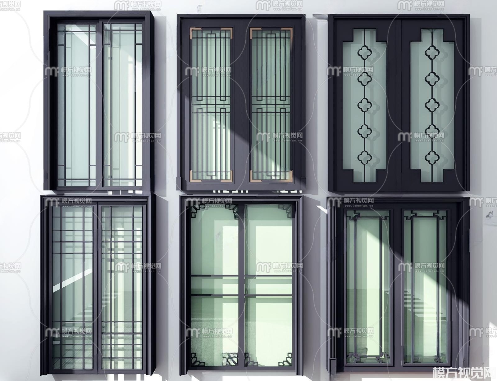 新中式厨房推拉门组合3D模型(ID:0010939)