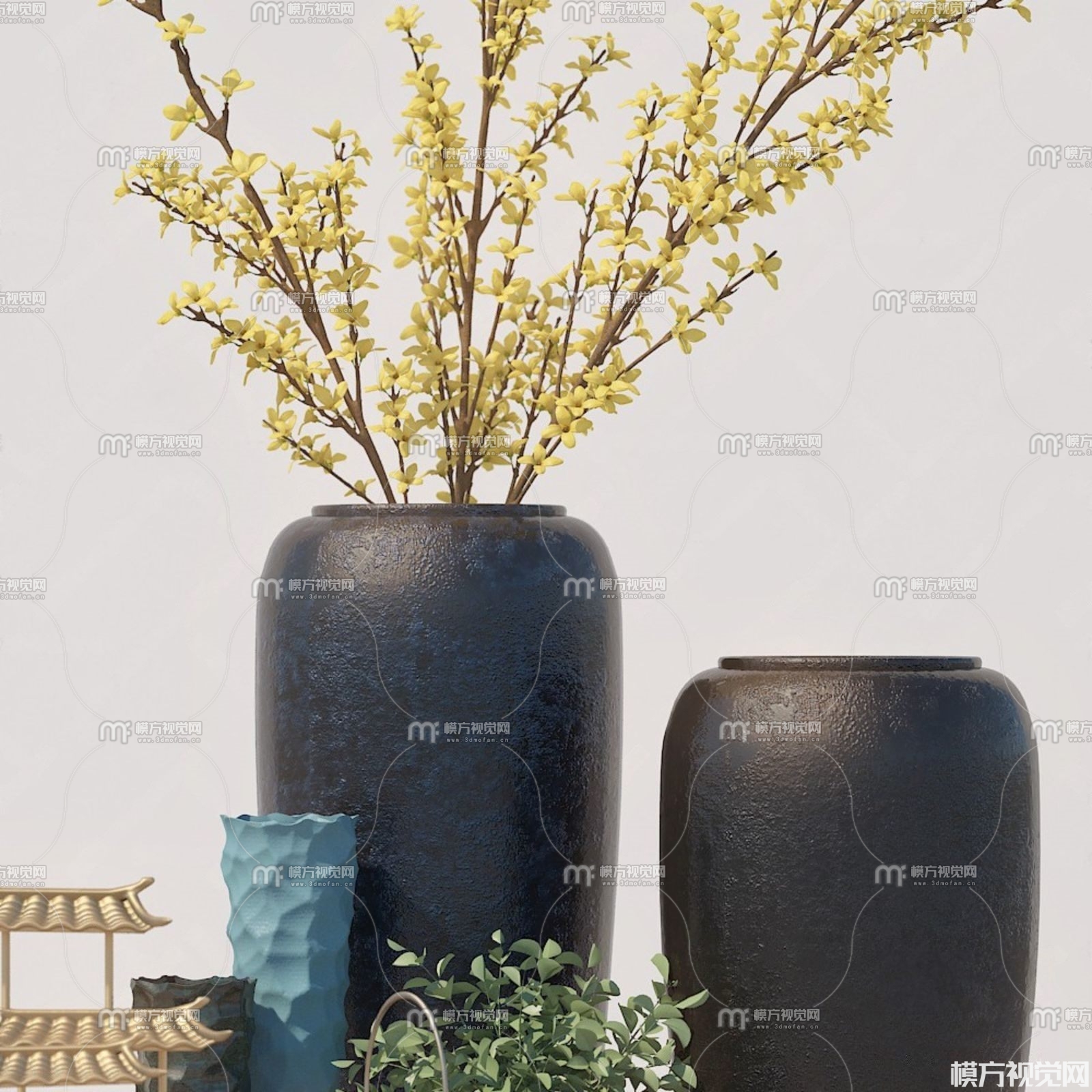 新中式花瓶饰品摆件组合3D模型(ID:0010957)