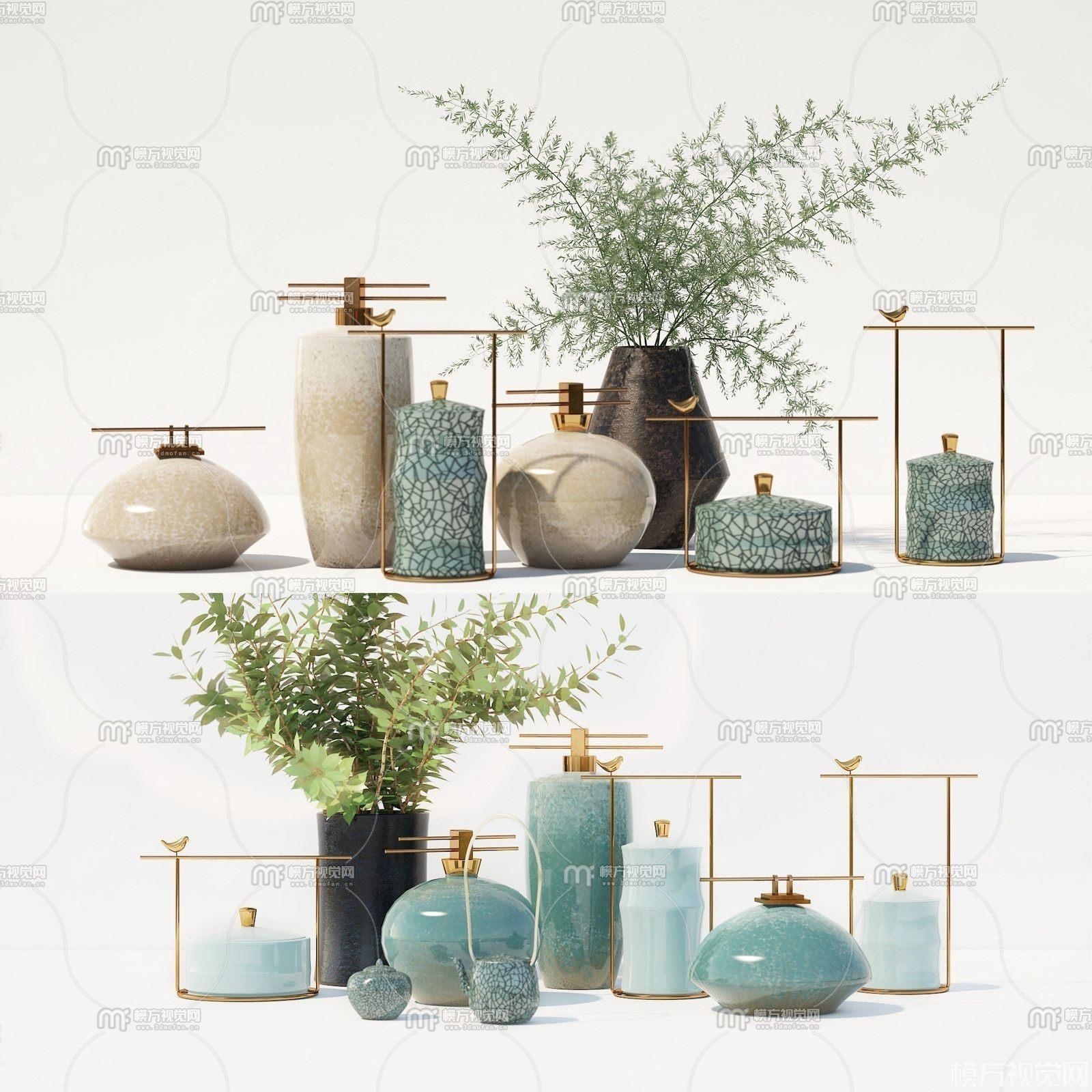 新中式花瓶饰品摆件组合3D模型(ID:0010958)