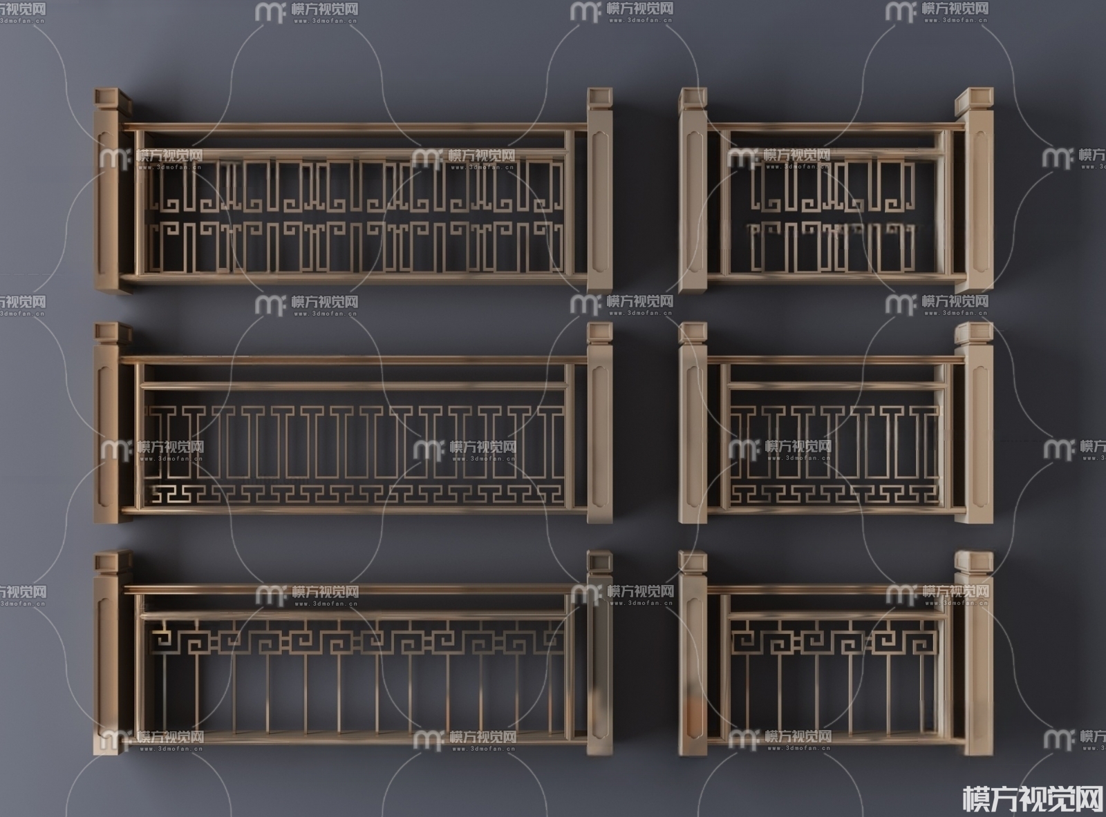 新中式金属栏杆护栏3D模型(ID:0010991)