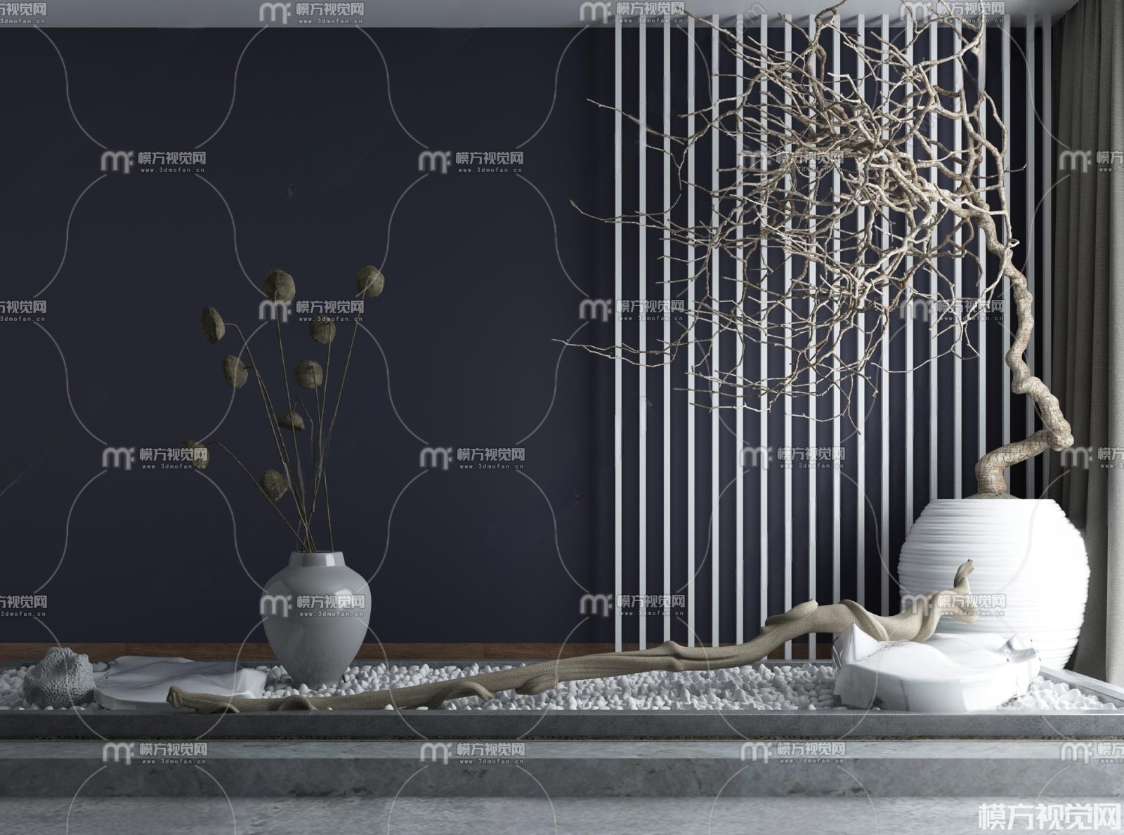 新中式景观日式枯山水石3D模型(ID:0010998)