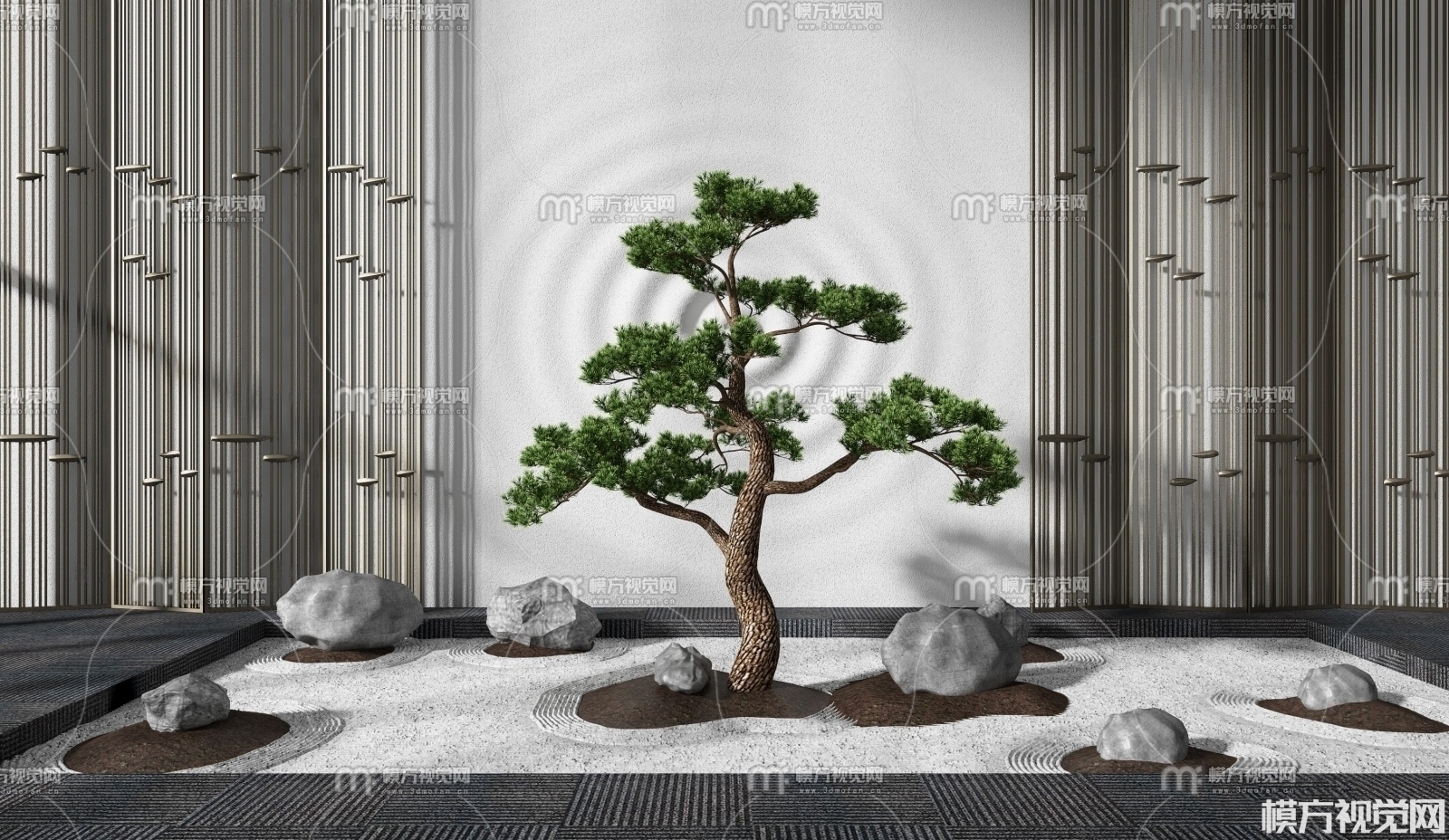 新中式松树枯山水景观小品3D模型(ID:0011004)