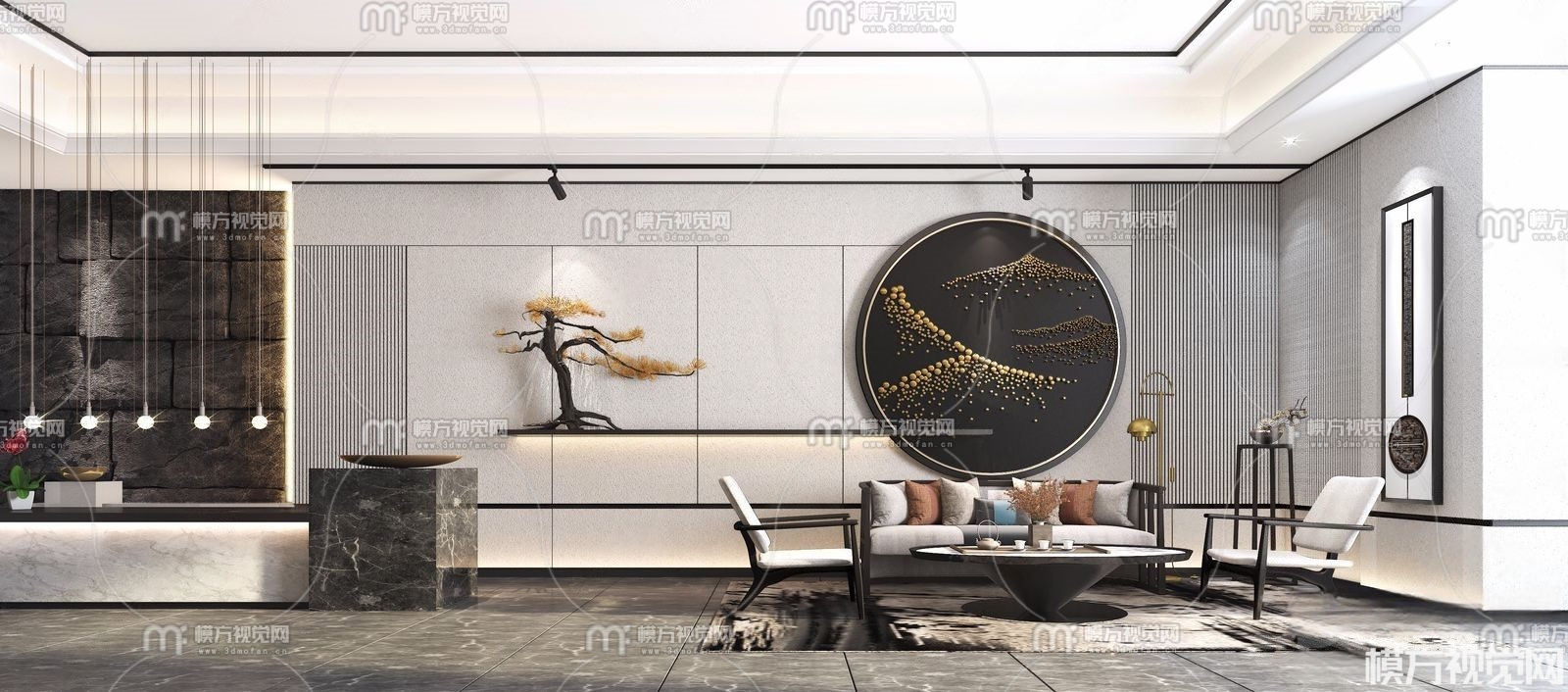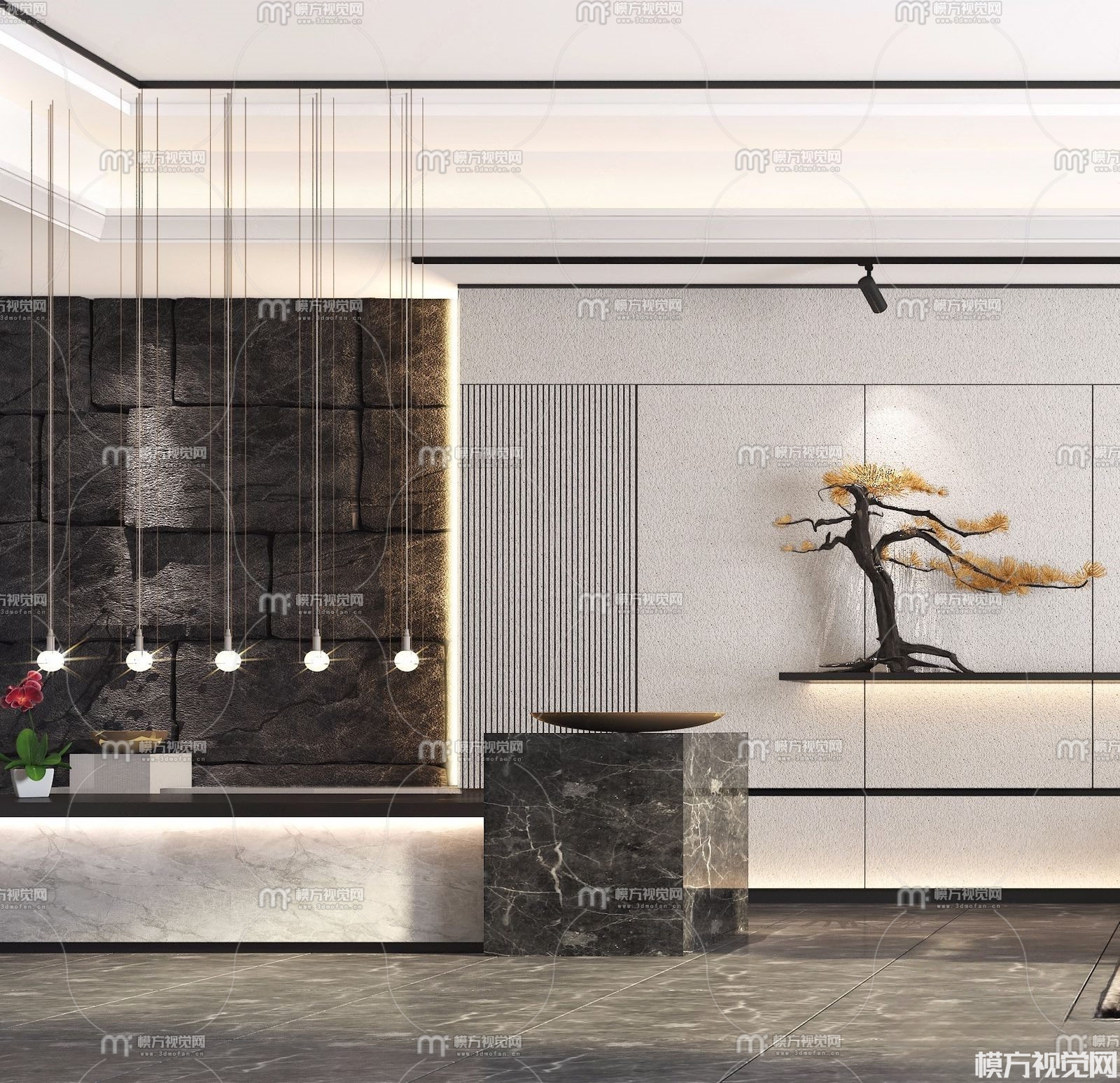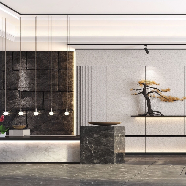 新中式酒店大堂接待厅3D模型(ID:0011017)