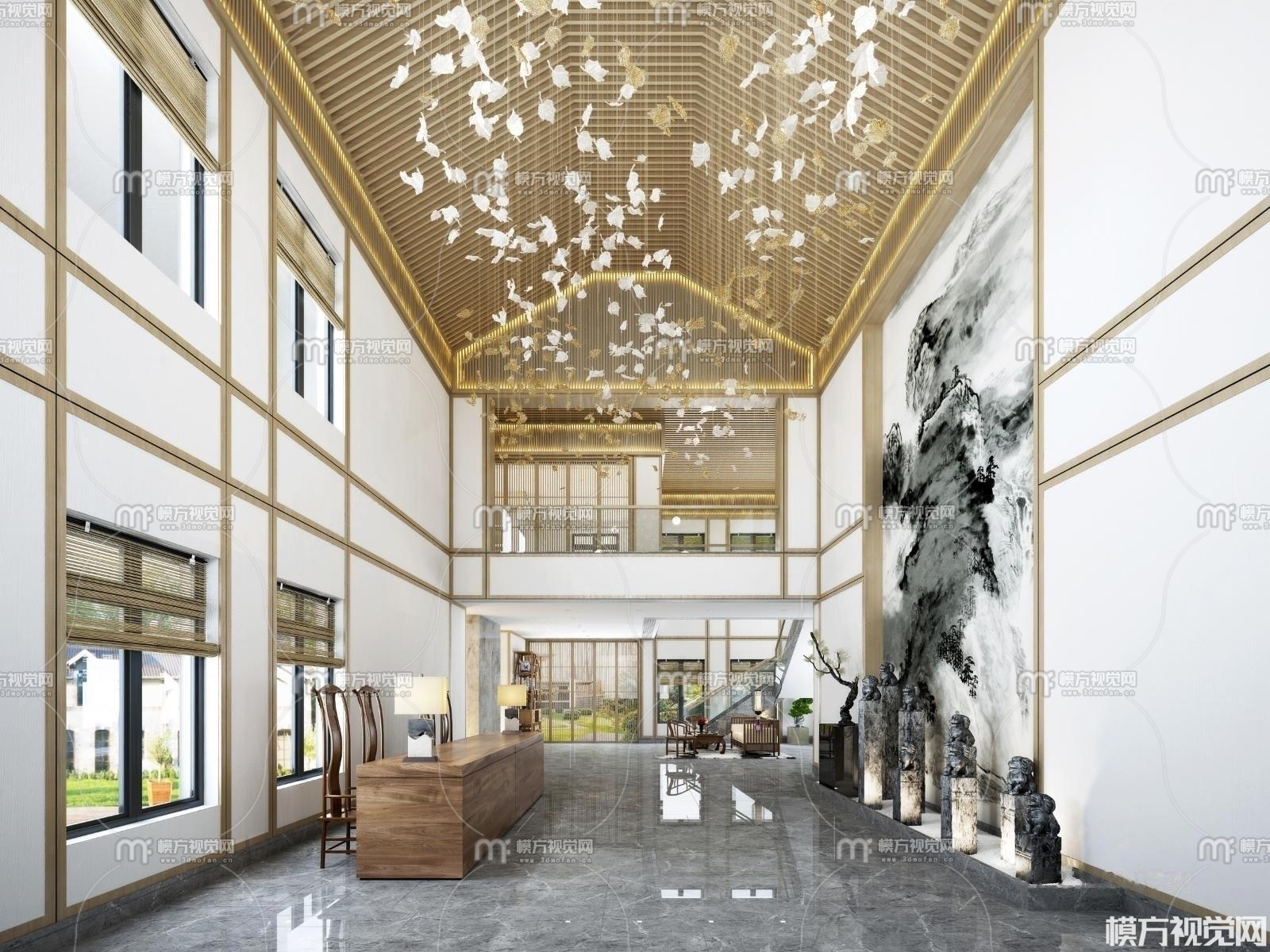 新中式酒店大堂前台3D模型(ID:0011018)