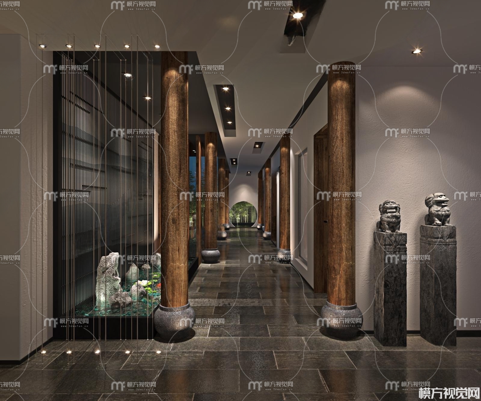 新中式酒店过道走廊摆件3D模型(ID:0011029)
