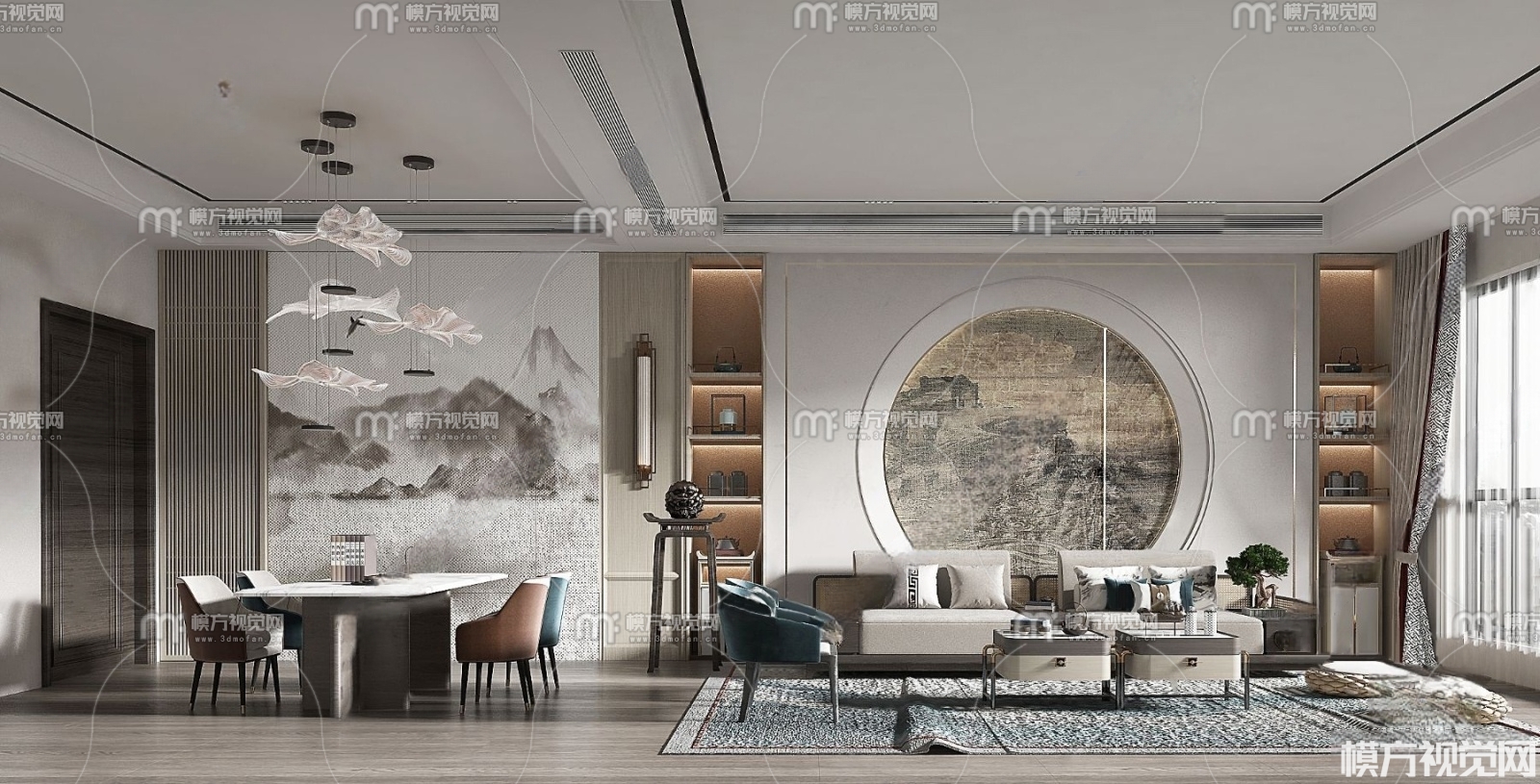 新中式客餐厅3D模型(ID:0011041)