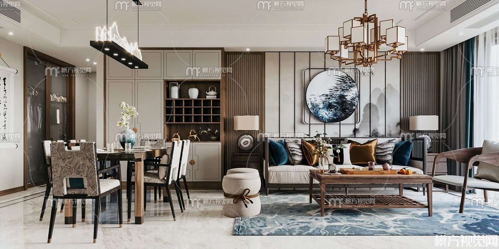 新中式客餐厅3D模型(ID:0011046)