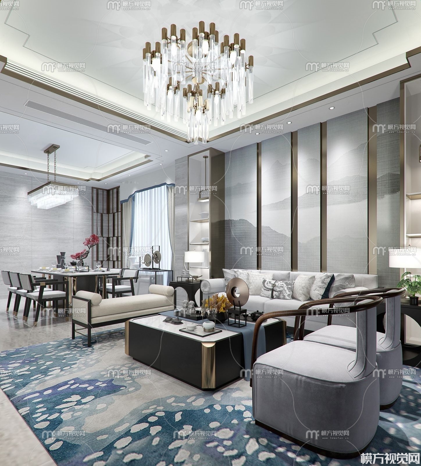 新中式客餐3D模型(ID:0011048)