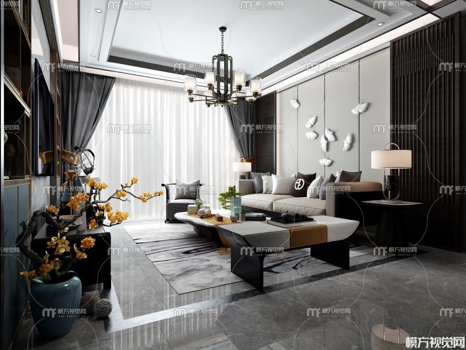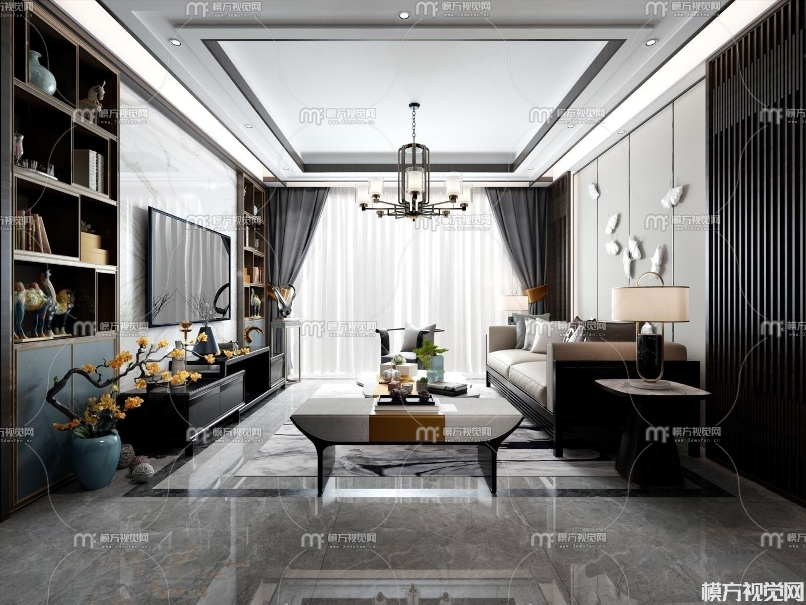 新中式客厅3D模型(ID:0011060)